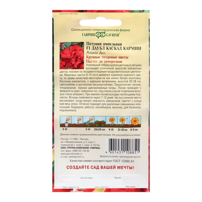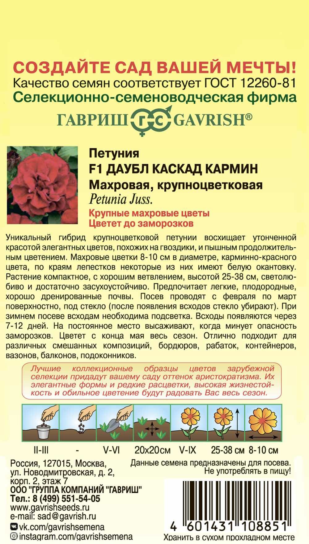 Сервис сравнения цен СкидкаГИД предлагает сравнить цены на товар «Петуния Даубл Каскад Кармин 5 шт. ГАВРИШ»