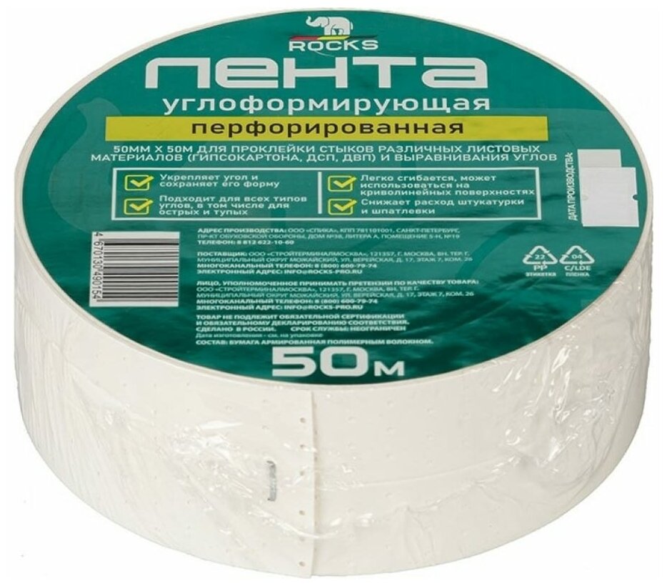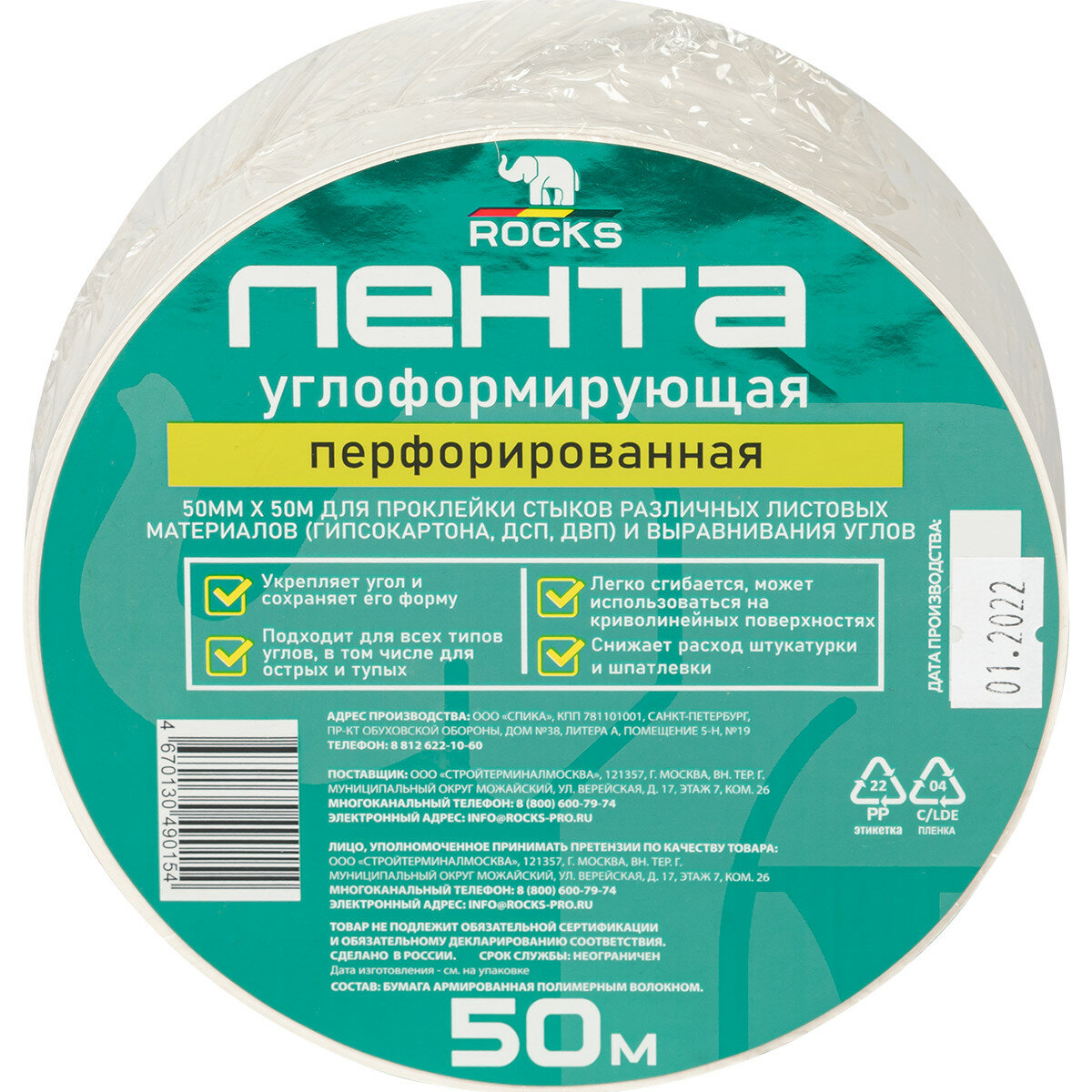 Углозащитная лента ROCKS предназначена для выравнивания углов при проведении монтажных работ и проклейки стыков листов гипсокартона, ДВП, ДСП и т.п.