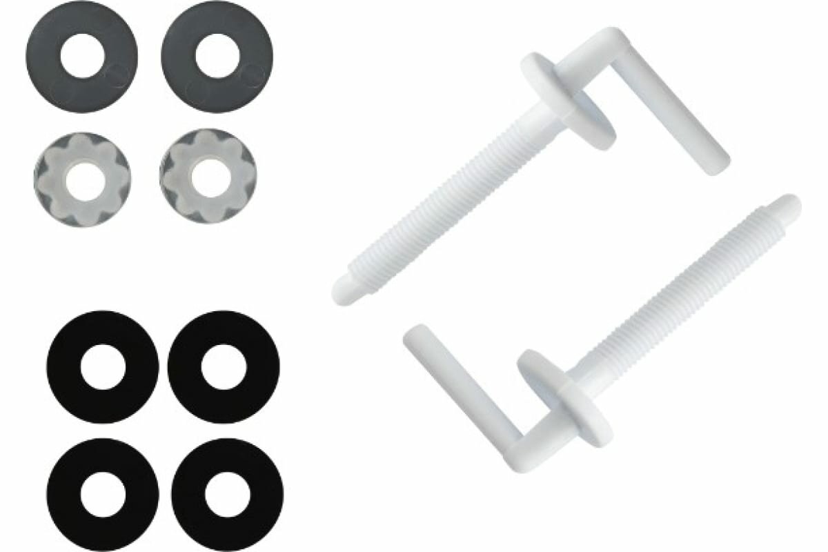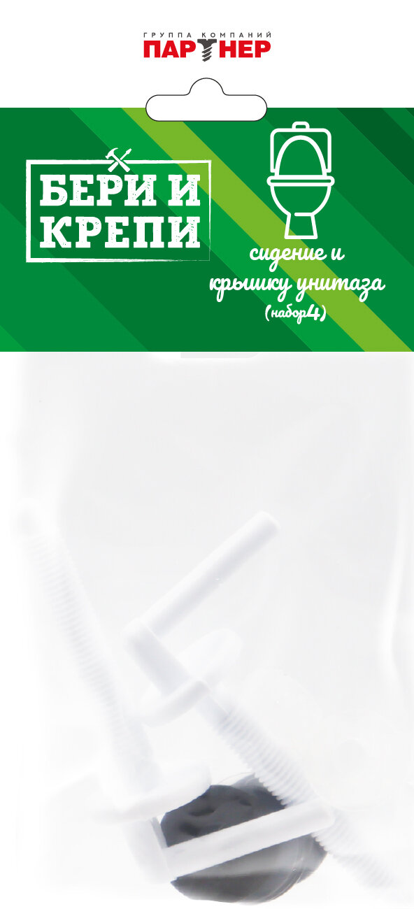 **Набор крепления сиденья и крышки унитаза №4** — комплект деталей, изготовленных из полипропилена, который не вступает в реакцию со многими средствами. Благодаря непористой структуре материал обеспечивает максимальную гигиеничность. Все изделия окрашены в универсальный белый цвет.