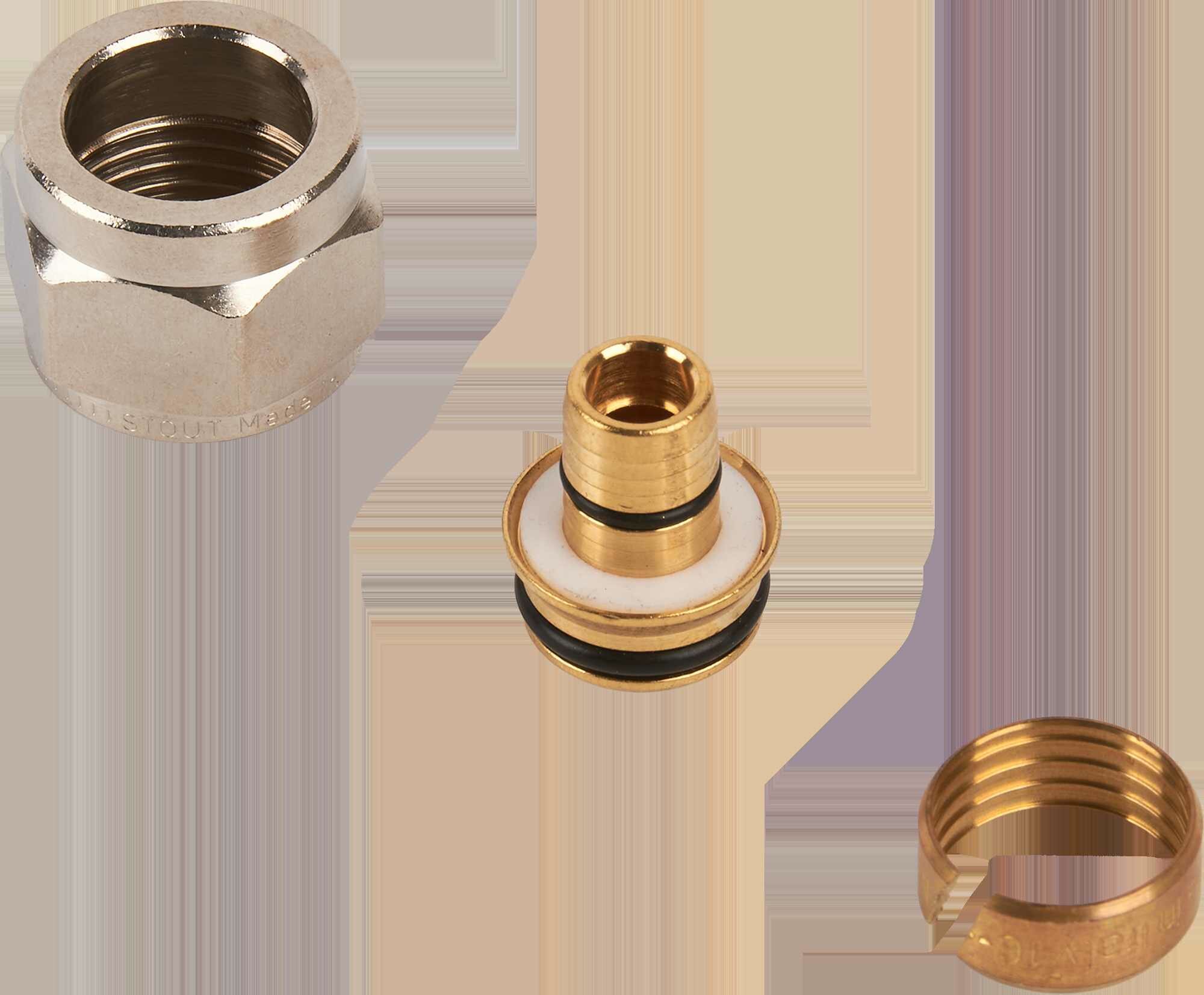 **Фитинг компрессионный Stout** используется для обустройства системы водоснабжения, сантехники. Подходит для оснащения труб из сшитого полиэтилена с холодной и горячей водой. Выдерживает температуру рабочей среды до 90°С.