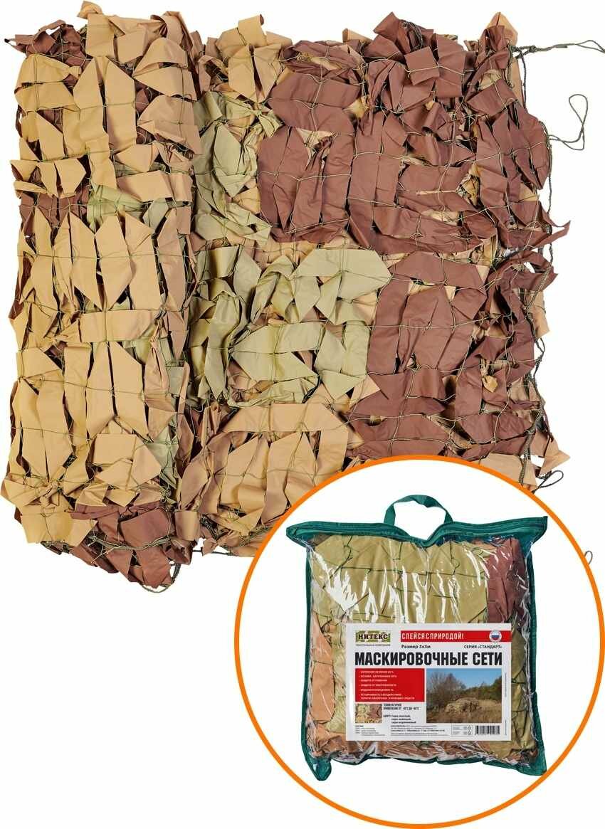 **Сетка маскировочная Нитекс «Стандарт»** предназначена для скрытия отдельных предметов (машины, вещей) от посторонних глаз. Может использоваться на даче, пикнике, в походе. Сделана из полиэфирного волокна, устойчивого к воздействию солнечных лучей.