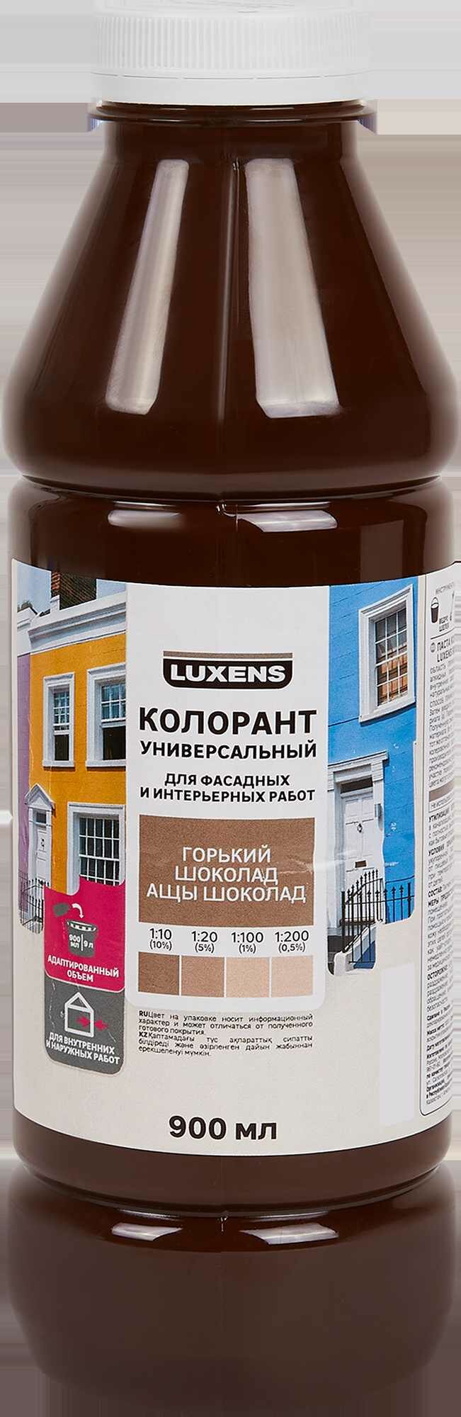 **Колорант Luxens** отличается универсальностью, подходит как для фасадных, так и для интерьерных работ. С его помощью можно создать эффектное мерцающее покрытие при колеровании лаков, пропиток и составов, предназначенных для декорирования и защиты деревянных поверхностей. Вводить требуется в колеруемый лакокрасочный материал до 10% колеровочной пасты. Прежде чем воспользоваться получившимся средством, обязательно протестируйте его на небольшом участке поверхности.