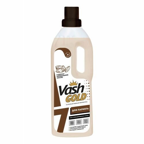 **Средство для мытья паркета Vash Gold** — жидкий концентрированный состав, отличающийся экономичным расходом и высокой эффективностью. Подходит для обработки любых деревянных полов. Карнаубский воск, входящий в его состав, придает поверхности блеск и защищает материал от возможного разбухания при попадании влаги. Дополнительно он формирует на поверхности напольного покрытия защитный слой, минимизирующий повторное загрязнение. Для мягкого, деликатного ухода в составе есть масло миндаля.