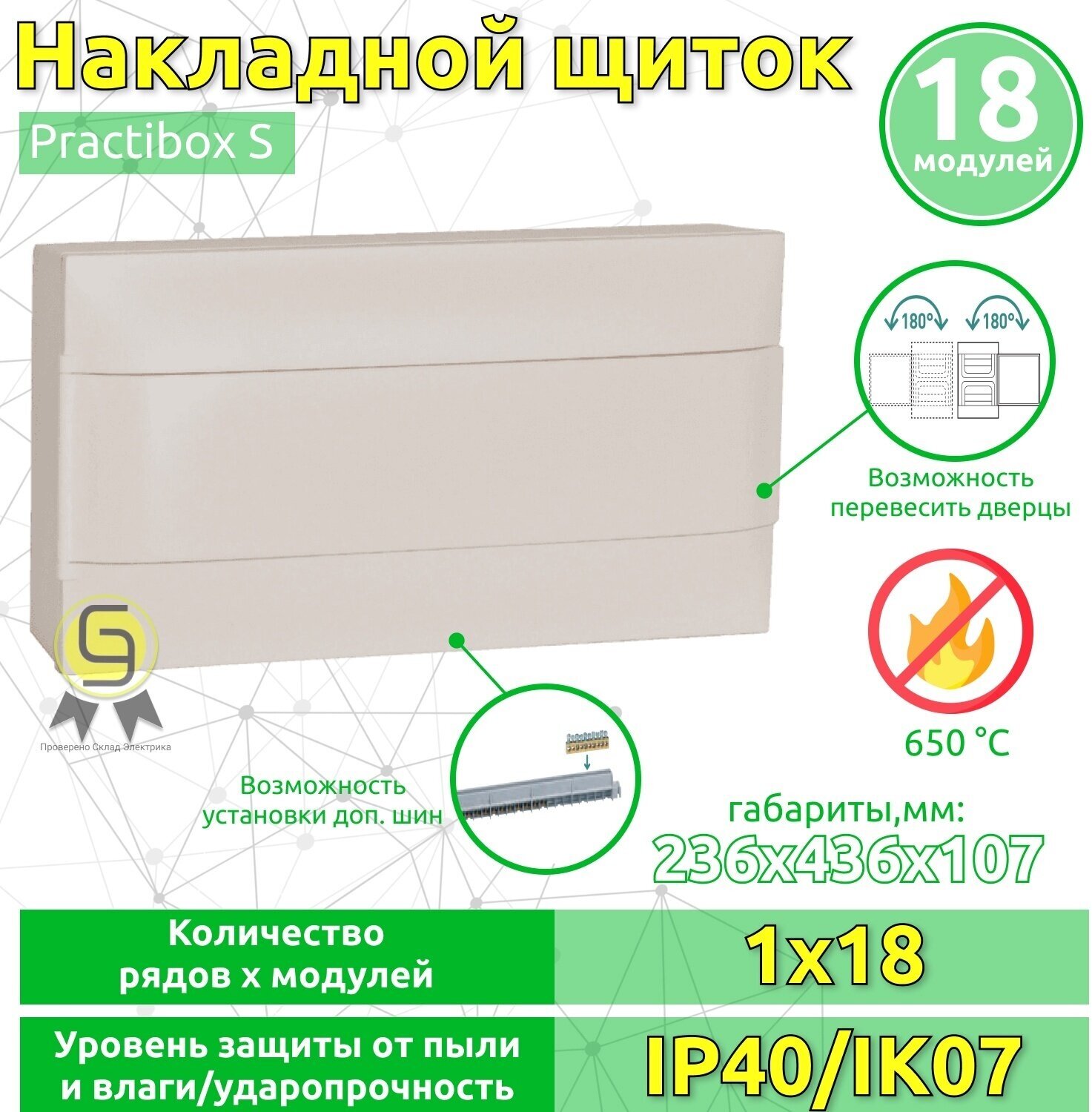 Щит распределительный навесной Legrand Practibox S 18 модулей IP40 пластик цвет белый 137606