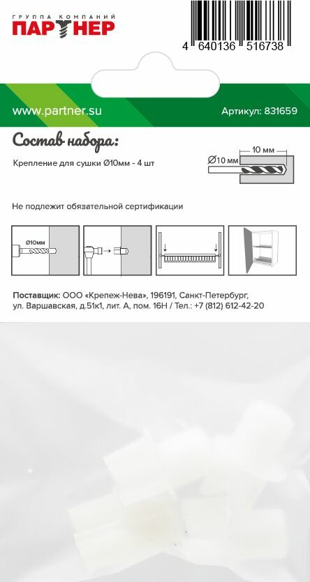 **Набор для креплений сушилки Невский крепеж** состоит из нескольких элементов, изготовленных из прочного и износостойкого пластика. Обеспечивает надежную фиксацию посудосушителя к стенкам кухонного шкафчика. Характеризуется высокой износостойкостью.