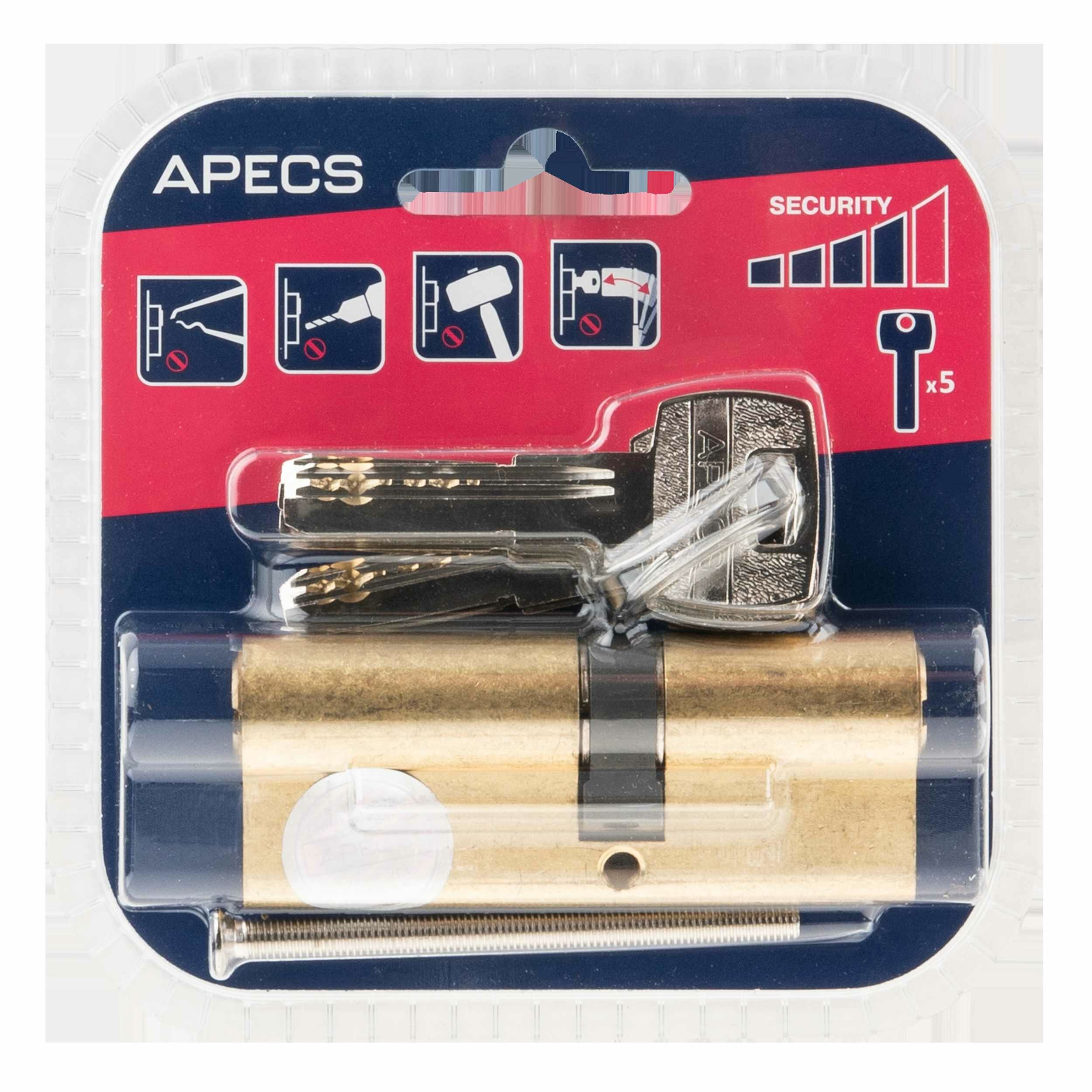 **Цилиндровые механизмы Apecs Pro LM-80(35/45)-G** отличаются универсальным направлением открывания двери. Изготовлены из латуни. Цвет покрытия — золотой. В комплекте поставляются 5 перфорированных ключей. Предназначены для обустройства металлических дверей. Защищены от открывания отмычками, ударам молотком, сверлением. Отличаются легкостью демонтажа при необходимости провести ремонт. Внешний и внутренний размеры цилиндра составляет 35 + 45 мм. Тип цилиндра: ключ-ключ.