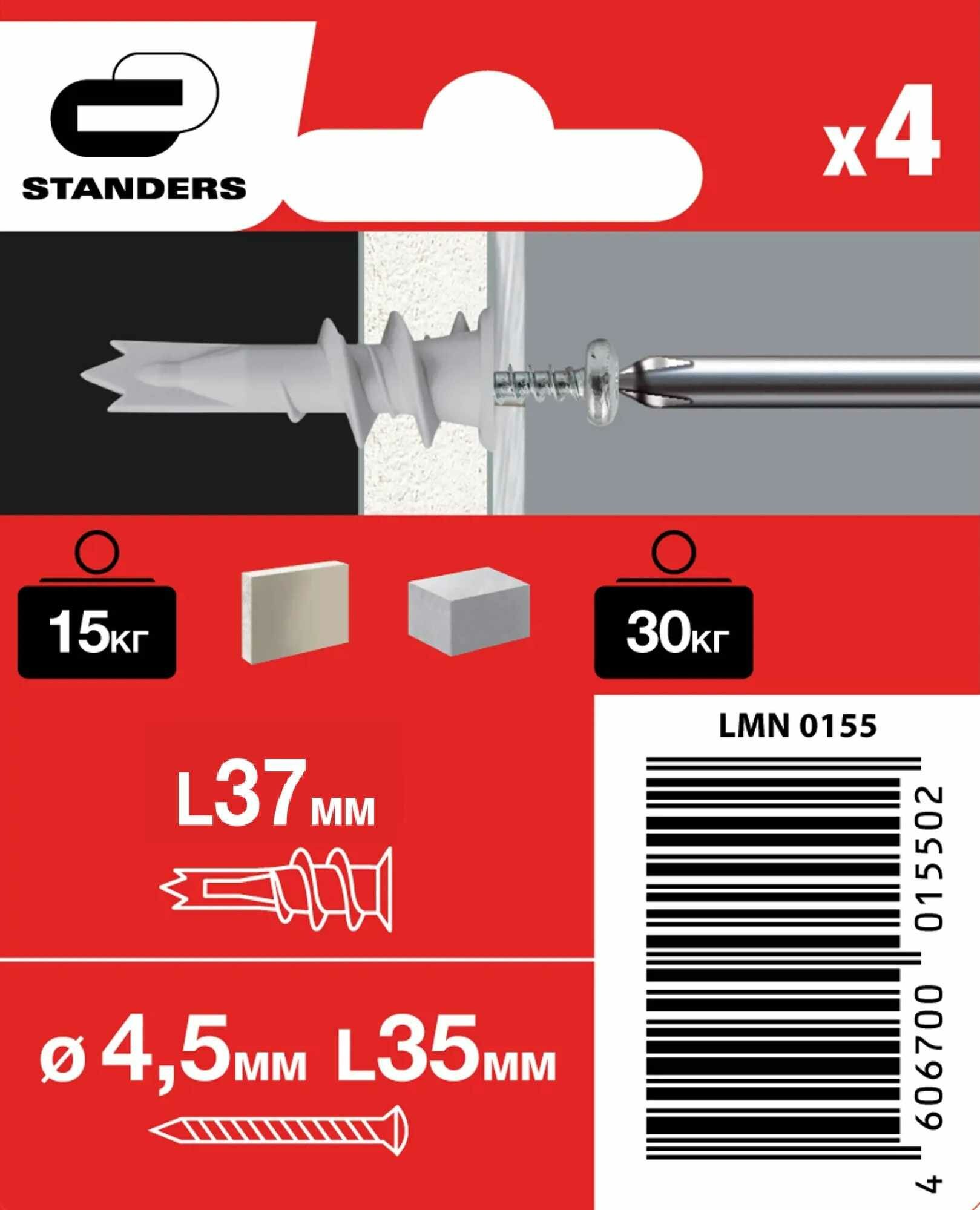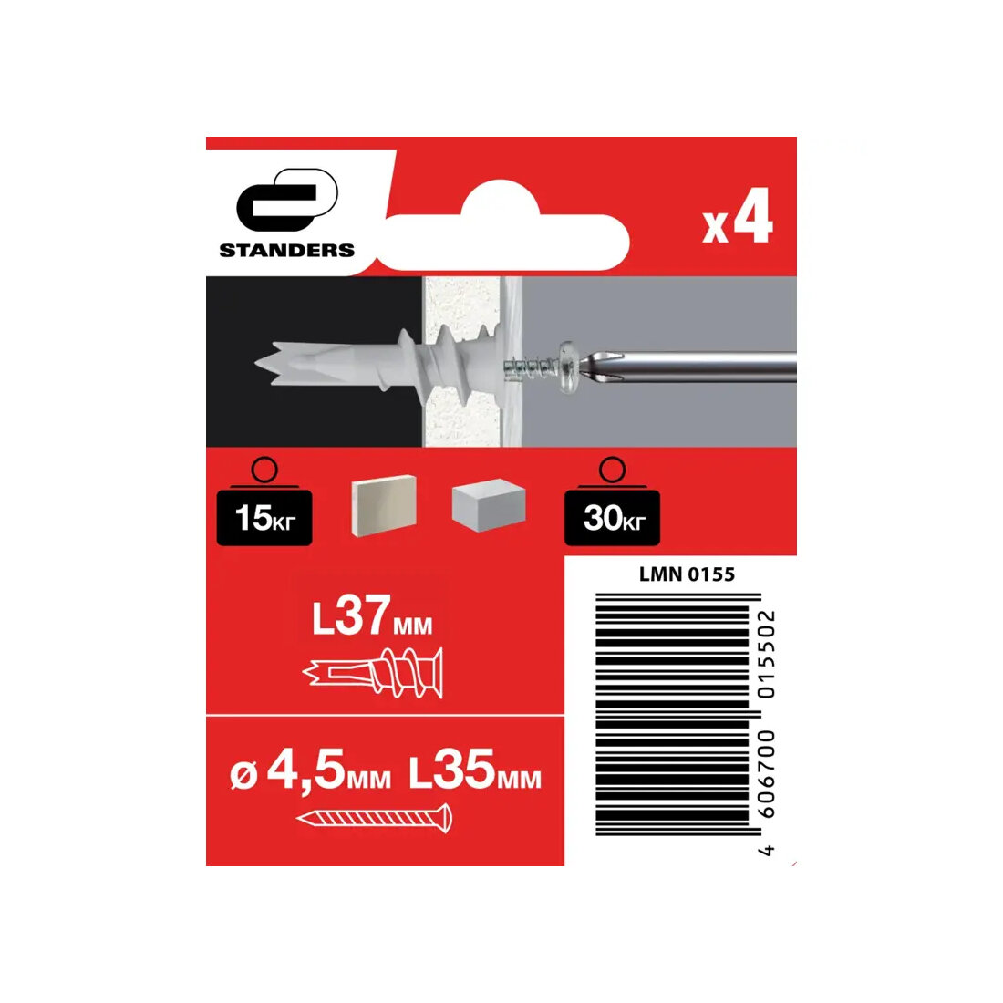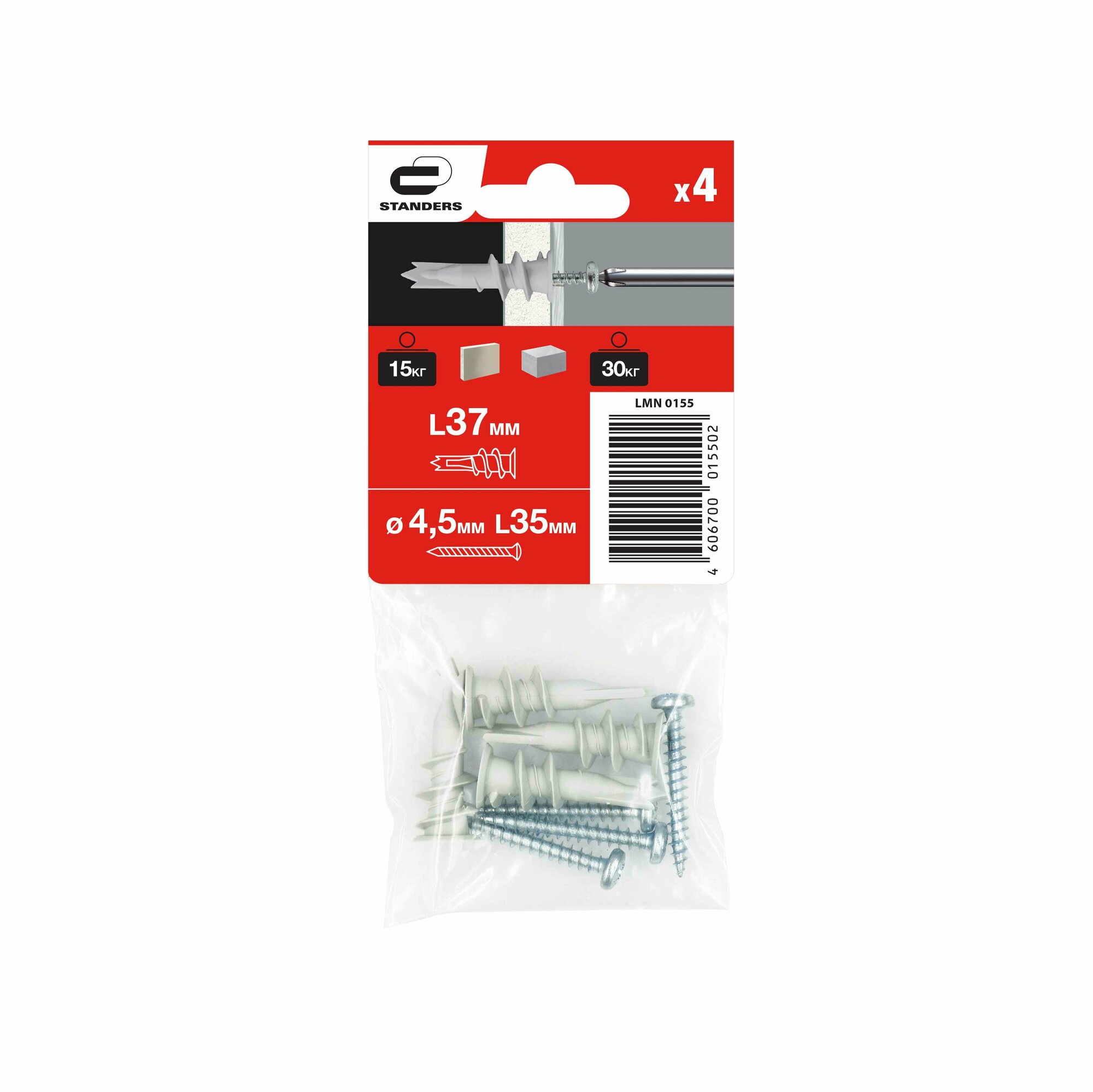 Дюбель Standers для листовых материалов PBA L 37 с шурупом 4.5х35 мм 4 шт.