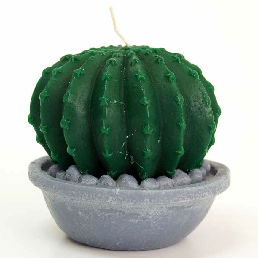 **Свеча Кактус в горшочке** - изделие фигурной формы, которое кроме своего прямого функционального назначения, служит также декоративным предметом. Основной материал - парафин. Фитиль изготовлен из хлопка, за счет чего характеризуется ровным и ярким горением.