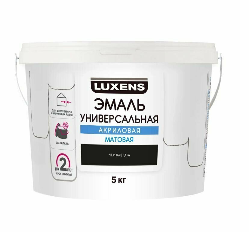 **Эмаль акриловая универсальная Luxens** предназначена для внутренних и наружных работ. Подходит для минеральных, предварительно загрунтованных металлических поверхностей, а также для внутренних работ по дереву и для деревянных фасадных элементов.