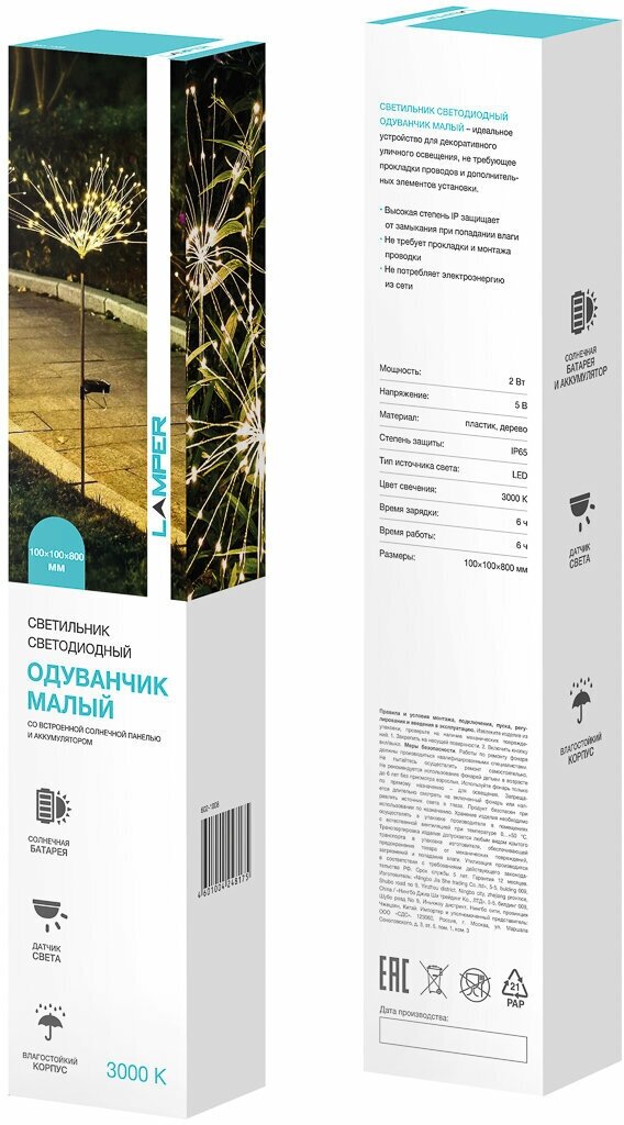| Тип продукта | Фонарик садовый на солнечной батарее |