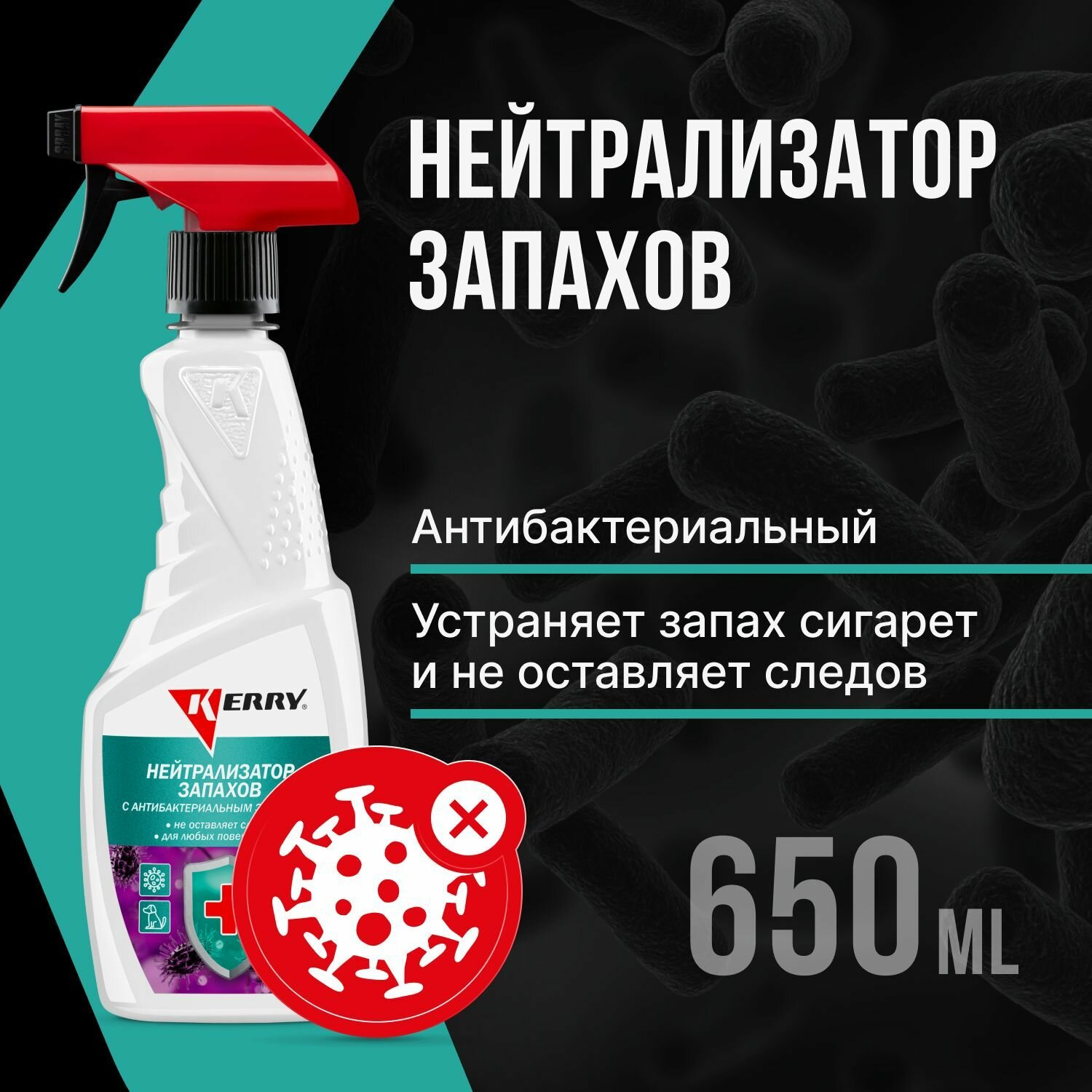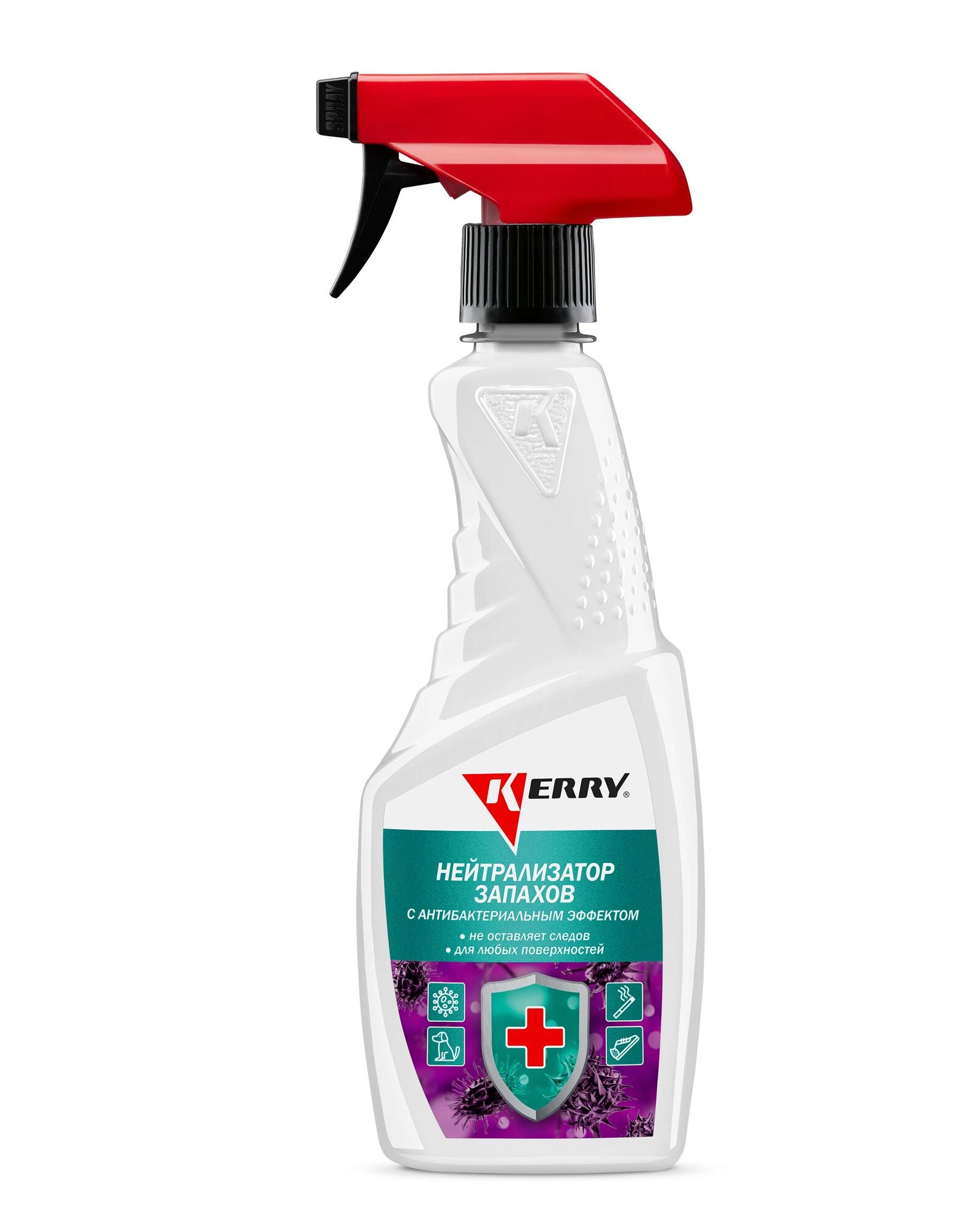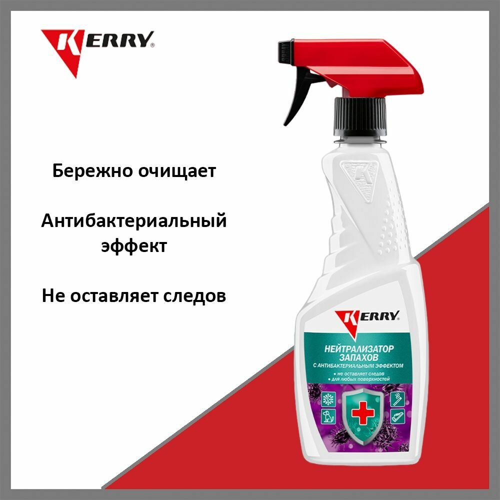 **Нейтрализатор запахов Kerry KR-519** обладает выраженным антибактериальным эффектом. Предназначен для профилактической обработки и обеззараживания салона автомобиля или других закрытых помещений. Применяется для обработки поверхностей из различных материалов: дерева, металла, ткани, винила, велюра, кожи. Благодаря химической реакции устраняет нежелательные ароматы.