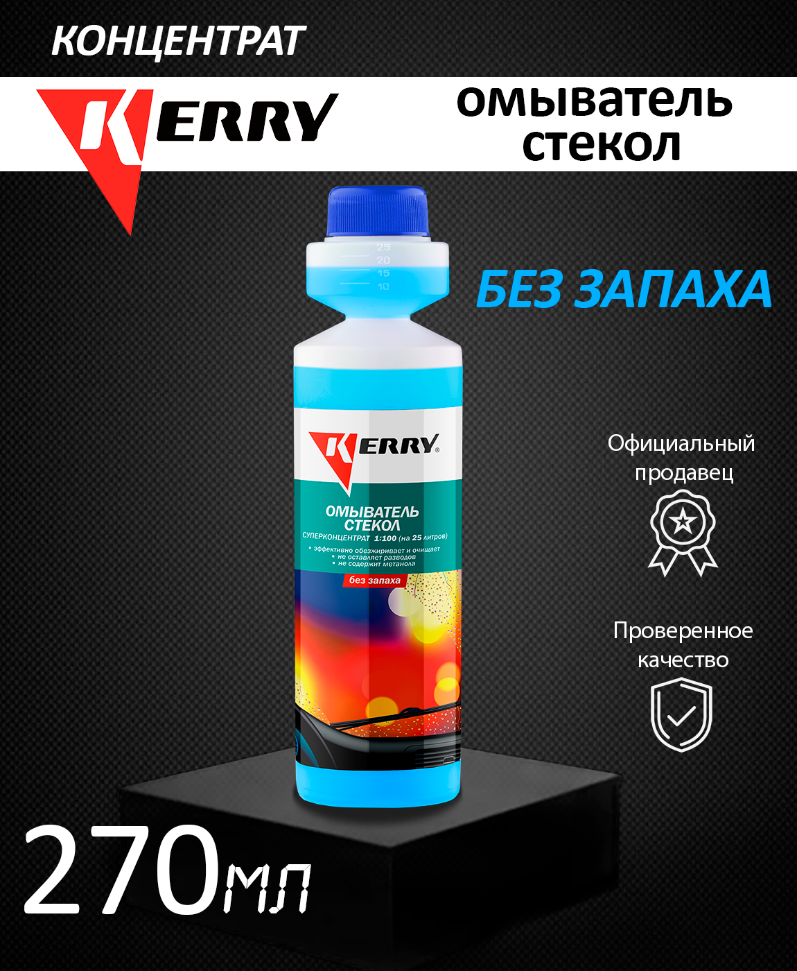 Стеклоомывающая жидкость без метанола Kerry KR-336 0.27 л без запаха, суперконцентрат, 270 мл