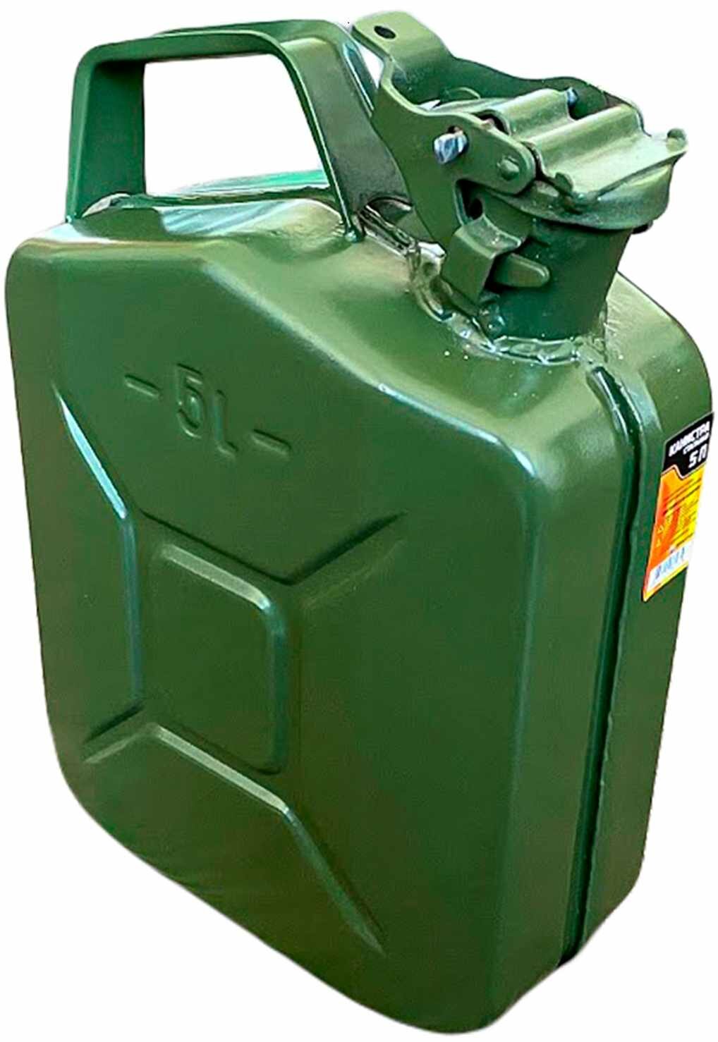 **Канистра Zarya 5 л металл зеленый** – это вместительная канистра с крышкой для хранения бензина, дизельного топлива, а также других горючих жидкостей.