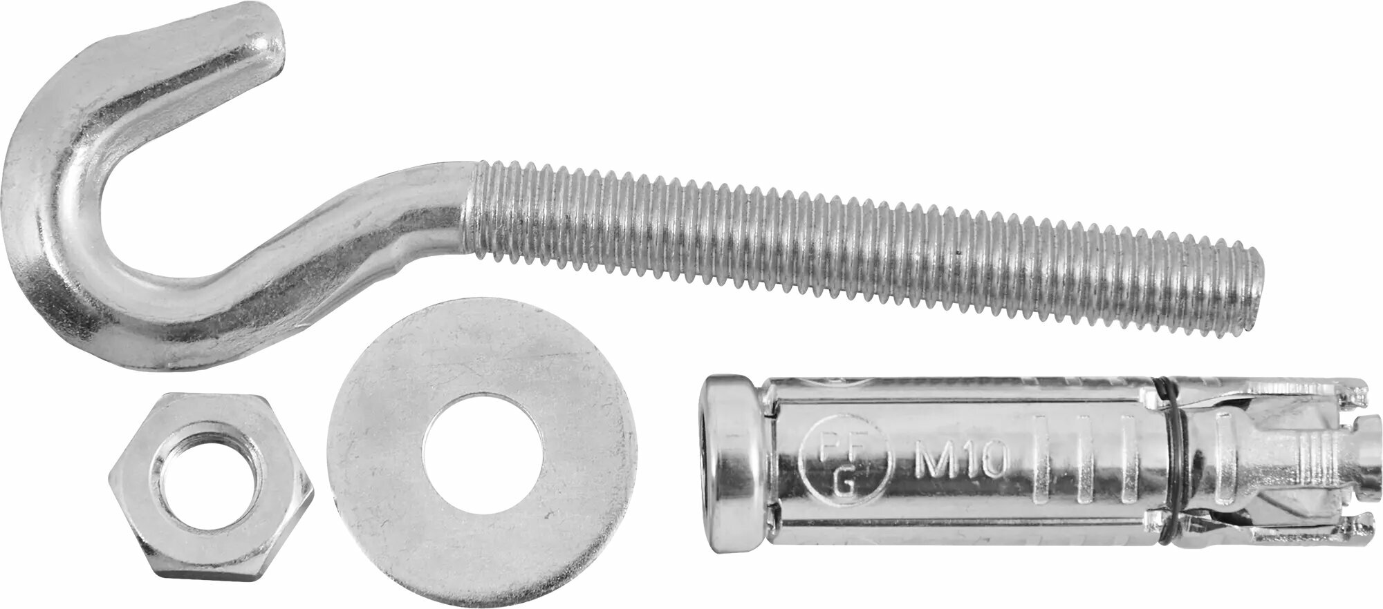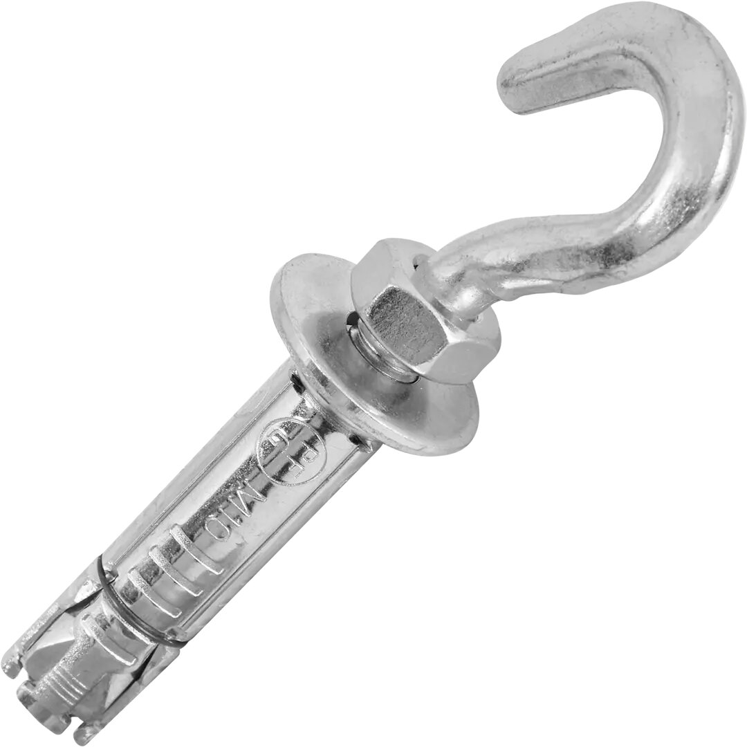 **Анкер крюк-болт Sormat PFG HBF 10** предназначен для монтажа умеренно тяжелых конструкций в бетоне, природном камне, кирпиче. Отличается большой зоной расклинивания, позволяющей проводить монтаж в основаниях невысокого качества, к примеру, в стены старых построек. Изготовлен из прочной оцинкованной стали.