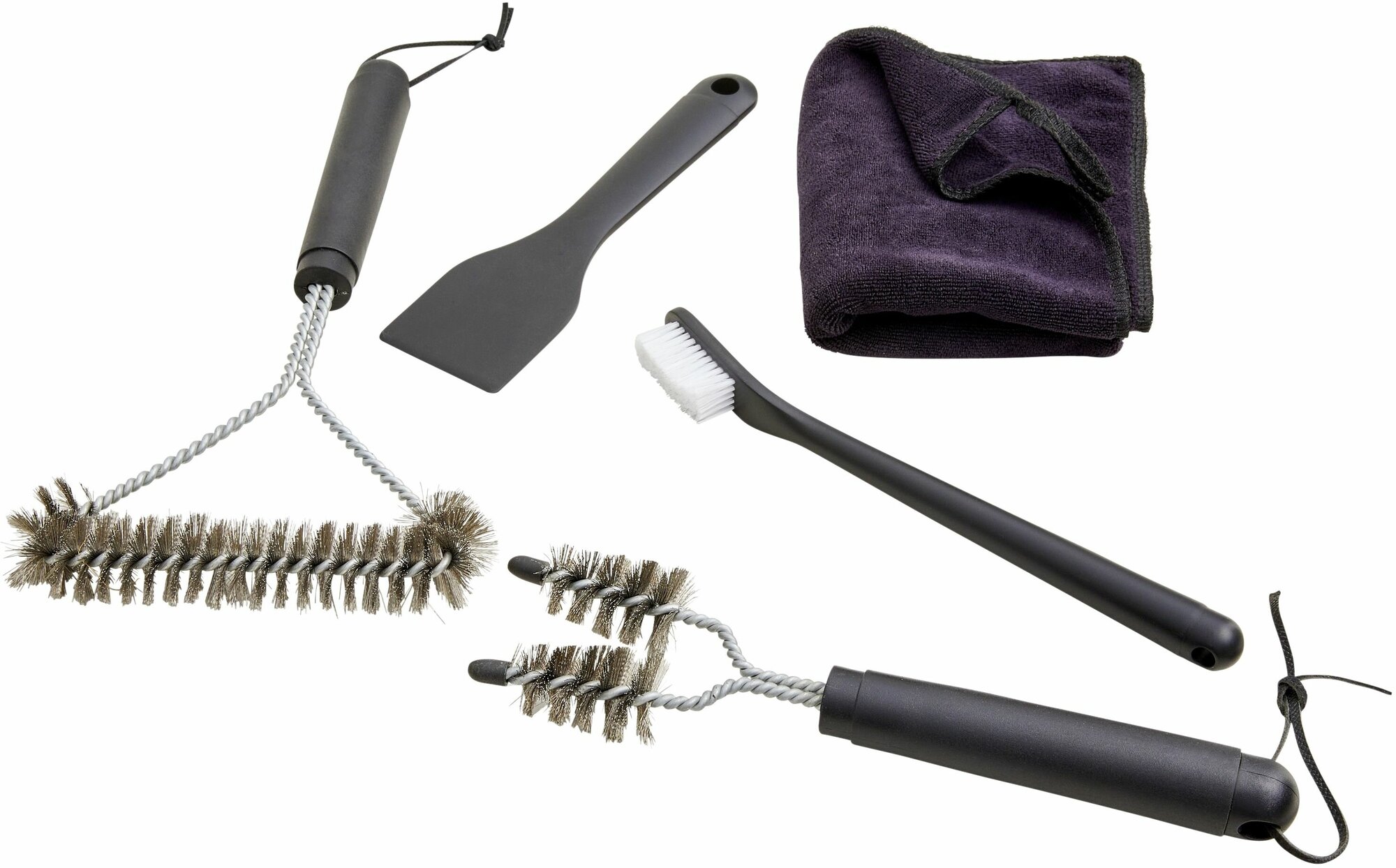 **Набор Naterial** предназначен для очистки решеток гриля. Состоит из пяти предметов - тряпки, трех щеток разной формы, лопатки. Помогает быстро привести гриль в чистое состояние, бережно удаляет присохший жир, нагар и остатки пищи. После эксплуатации изделия промывают под чистой водой и оставляют для просушки на открытом воздухе.