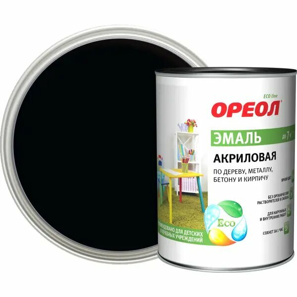 На сегодняшний день товар «Эмаль акриловая Ореол глянцевая цвет черный 0.9 кг» можно купить с кешбеком в 1 магазине: Яндекс.Маркет