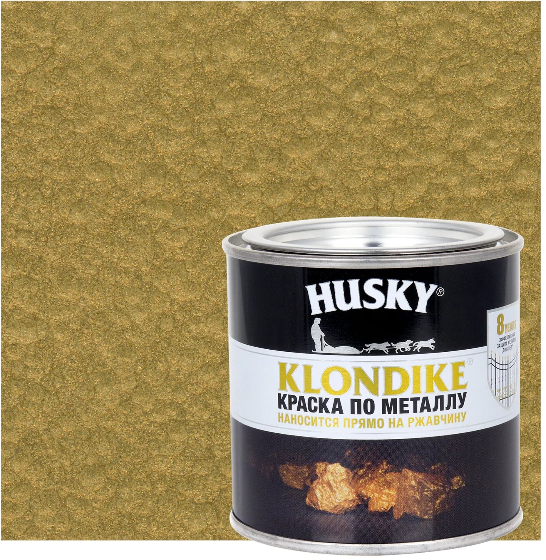 **Краска Husky Klondike** - продукция темно-бронзового цвета (RAL), особенность которой заключается в том, что ее можно наносить прямо на покрытые ржавчиной участки. Идеально подходит для любых металлических поверхностей - можно наносить как внутри, так и снаружи помещения. Формирует прочное антикоррозионное и атмосферостойкое покрытие. Включает в себя преобразователь ржавчины, грунтовку и финишное покрытие. Состоит из таких компонентов, как дезодорированный растворитель, полимерное связующее, антикоррозионные пигменты, добавки и ингибитор коррозии. Перед нанесением необходимо очистить, высушить и обезжирить поверхность. Старое лакокрасочное покрытие, окалину и рыхлую ржавчину нужно тщательно удалить. Если основание выполнено из цветного металла или поверхность гальванизированная, то требуется воспользоваться грунтовкой. Краску необходимо тщательно перемешать. Наносить ее нужно в 2 слоя - для этого можно использовать кисть, малярный валик или метод распыления. Рекомендуемая температура при проведении работ от +5°C до +30°C. Не следует окрашивать в дождь.