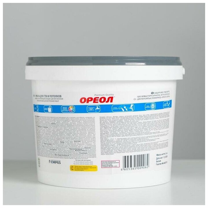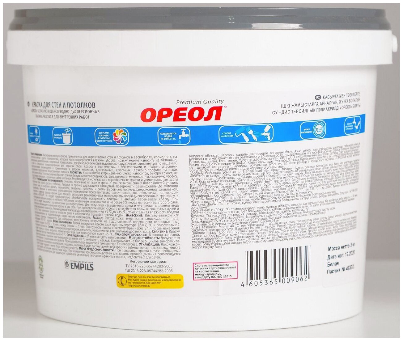 Краска водно-дисперсионная для стен и потолков Ореол моющаяся 3 кг