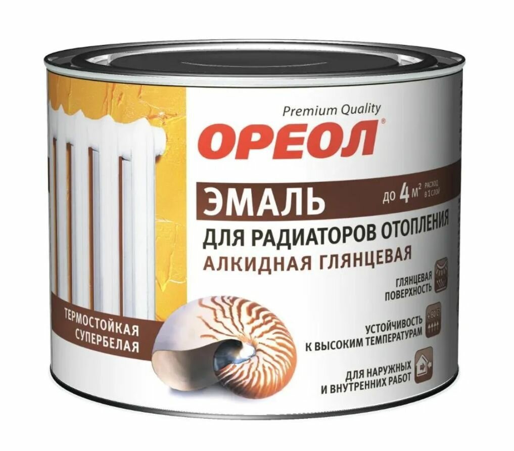 Эмаль алкидная для радиаторов отопления Ореол глянцевая 1 кг