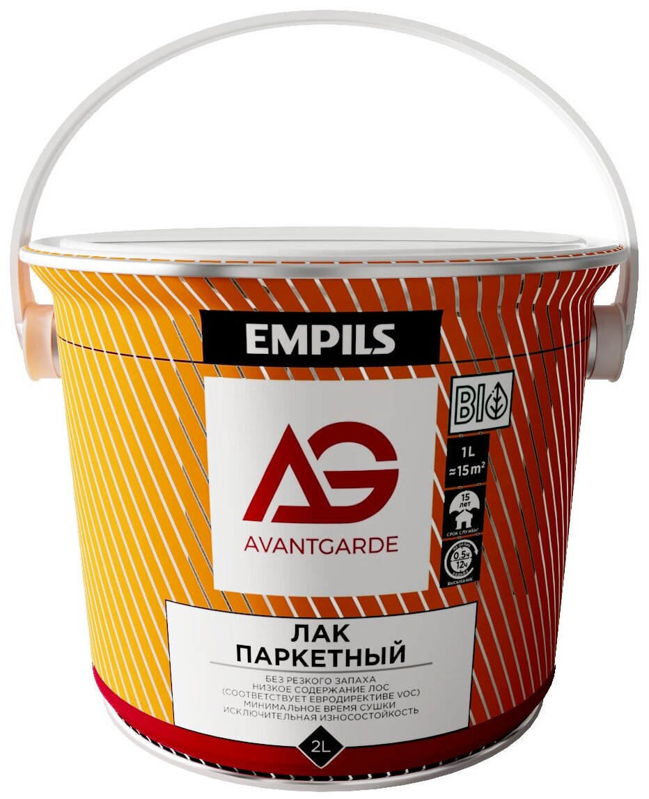 **Лак паркетный Empils Avant Garde** предназначен для защиты и декоративной отделки любых вертикальных и горизонтальных поверхностей из дерева и его производных (ДВП, ДСП, фанера, шпон, пробка и т.д.), в том числе половая доска, паркет, лестницы, стены, окна, двери, мебель и т. д., эксплуатируемых внутри помещений, например в спальнях, кабинетах, детских комнатах.