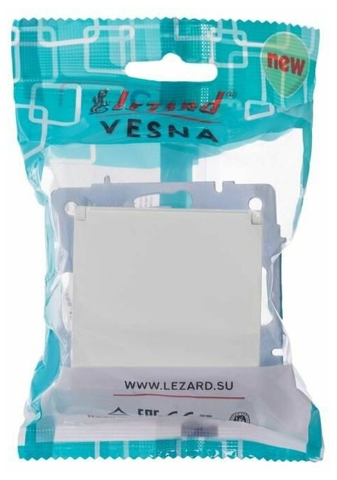 Розетка Lezard Vesna с заземлением с крышкой цвет белый
