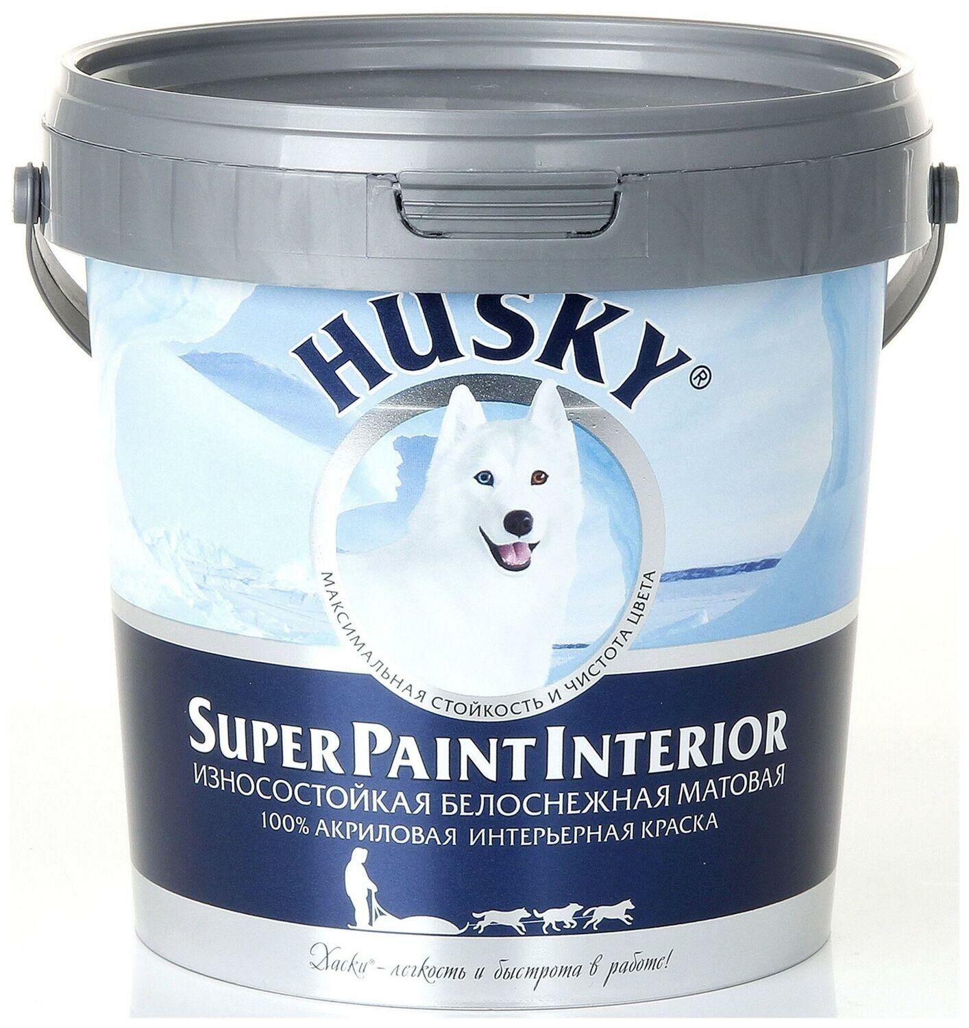 **Суперстойкая интерьерная краска Husky Super Paint Interior** — супербелая матовая 100 % акриловая краска премиум-класса для стен и потолков во всех типах сухих и влажных помещений, включая ванные комнаты. Краска обеспечивает исключительную легкость нанесения в сочетании с практически идеальным качеством и долговечностью покрытия. Окрашенные поверхности сохраняют равномерную матовость и чистоту цвета не менее 12 лет. Страна производства — Россия.