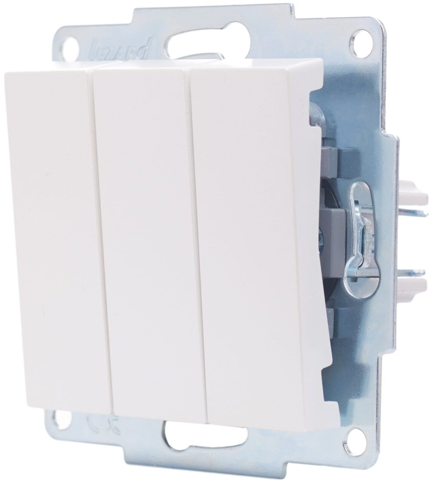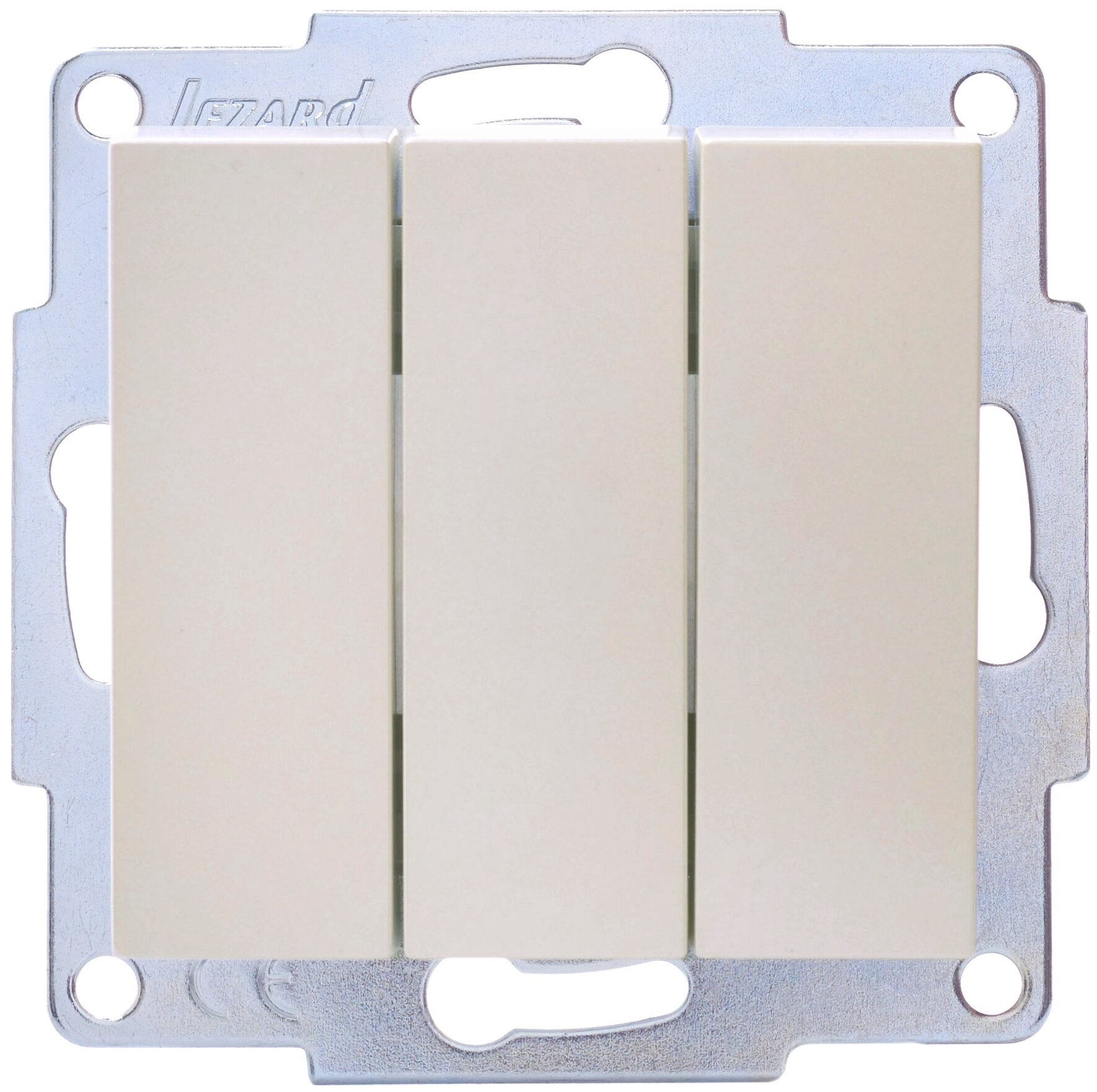 **Выключатель Lezard Vesna** выполнен в лаконичном дизайне, органично впишется в современные интерьеры. Оснащен 3 клавишами без подсветки. Корпус и клавиши изготовлены из прочного и негорючего ABS пластика.