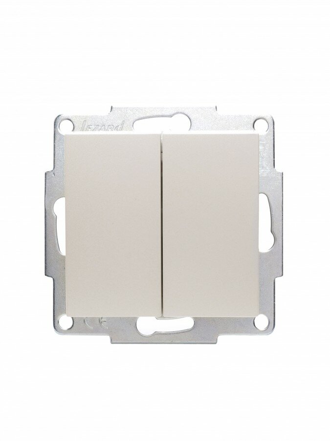 **Выключатель Lezard Vesna** выполнен в лаконичном дизайне, органично впишется в современные интерьеры. Оснащен 2 клавишами без подсветки. Корпус и клавиши изготовлены из прочного и негорючего ABS пластика.