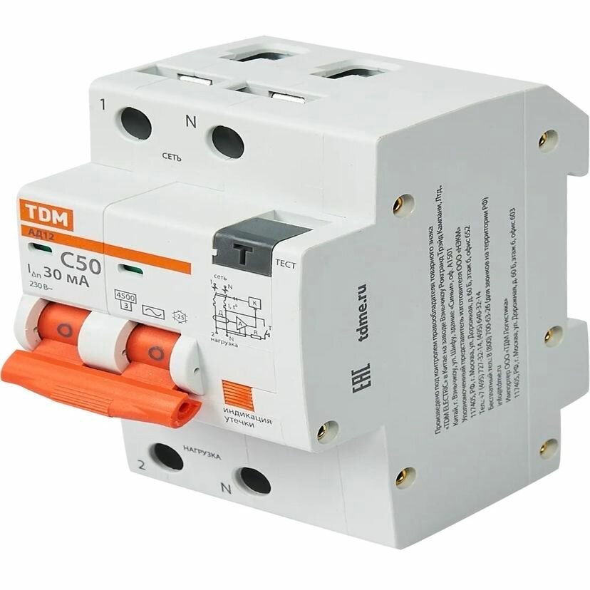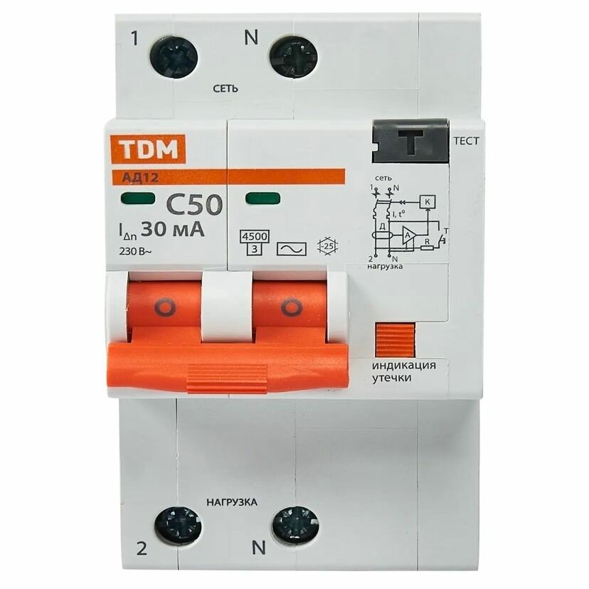 Дифференциальный автомат Tdm Electric АД-12 2P C63 A 30 мА 4.5 кА AC SQ0204-0023