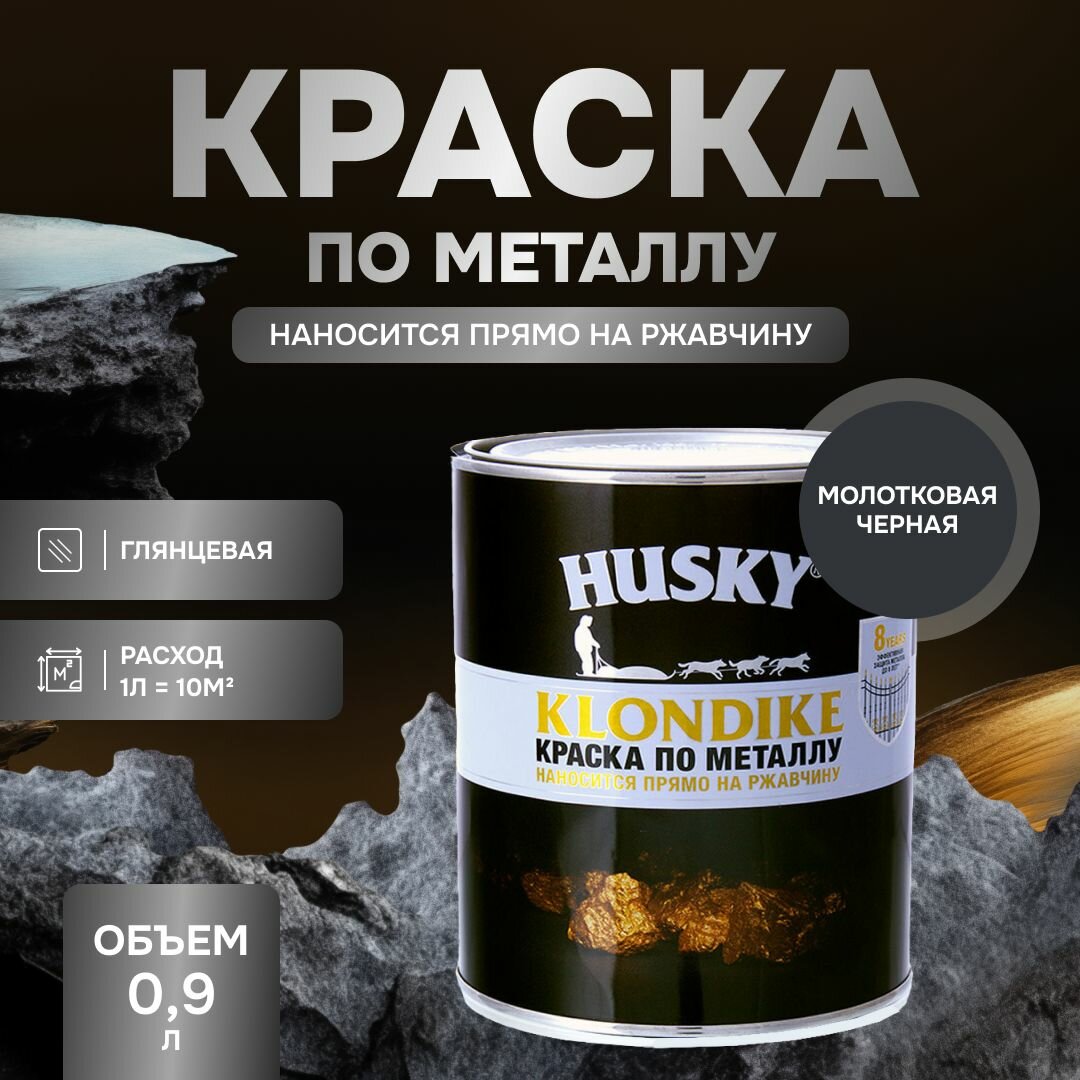 **Краска по металлу молотковая Husky Klondike** предназначена для работ внутри и снаружи помещений. Формирует гладкую поверхность с металлическим эффектом. Создана по формуле «3 в 1», сочетает в себе три свойства: преобразователь ржавчины, грунтовка, декоративное финишное покрытие.