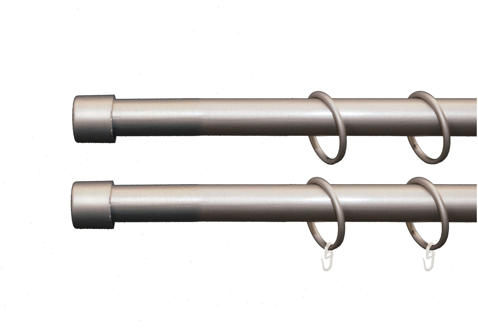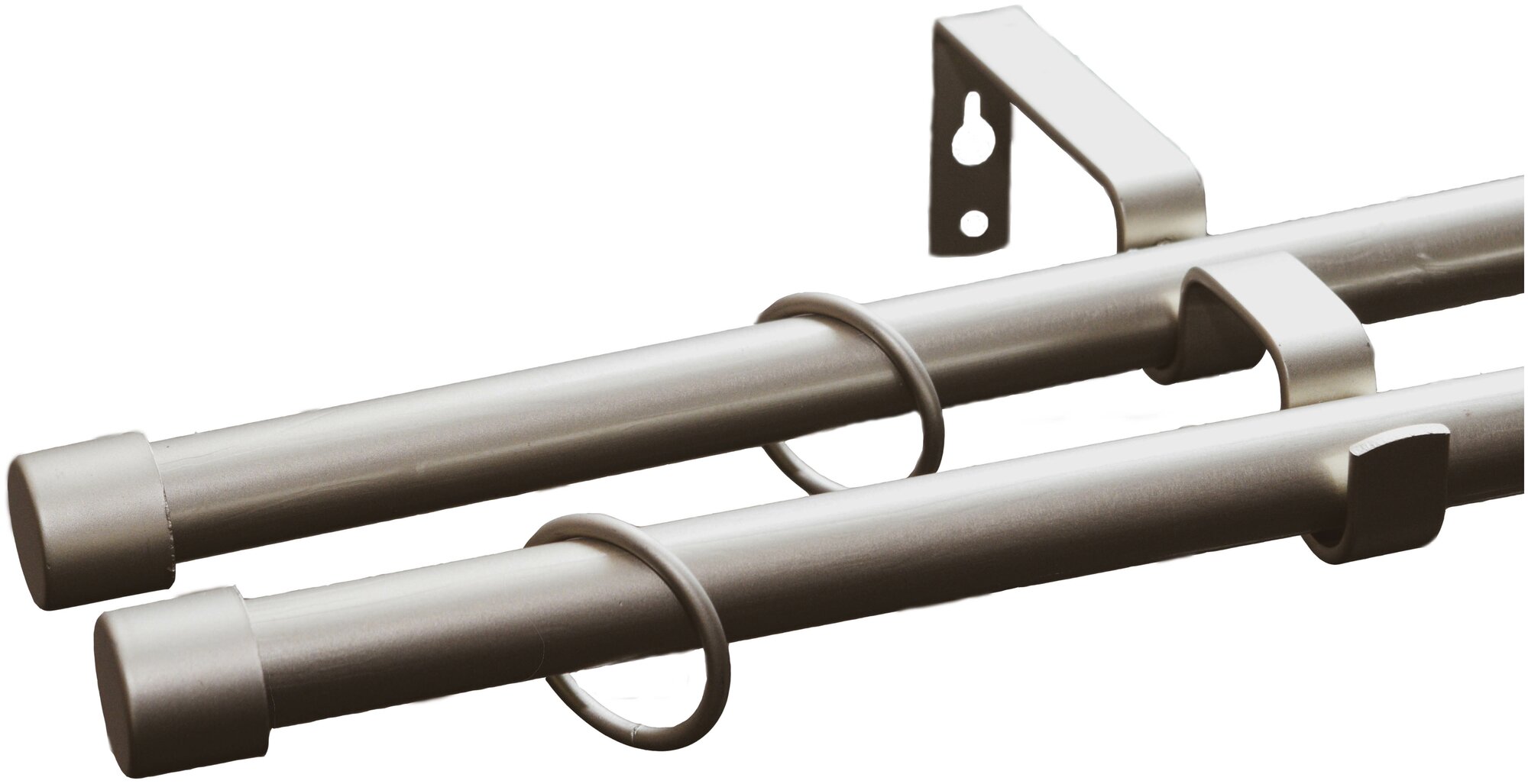 **Карниз двухрядный** — универсальное типовое изделие, не требующее проведения предварительных замеров. Размер штанги варьируется в пределах от 160 до 320 см, длина держателя — от 16 до 19 см. Необходимые размеры выставляются при креплении изделия к стене. Модель изготовлена из прочного и легкого сплава с матовым покрытием. Лаконичный дизайн и универсальная расцветка позволяют использовать модель в современных и классических интерьерах.