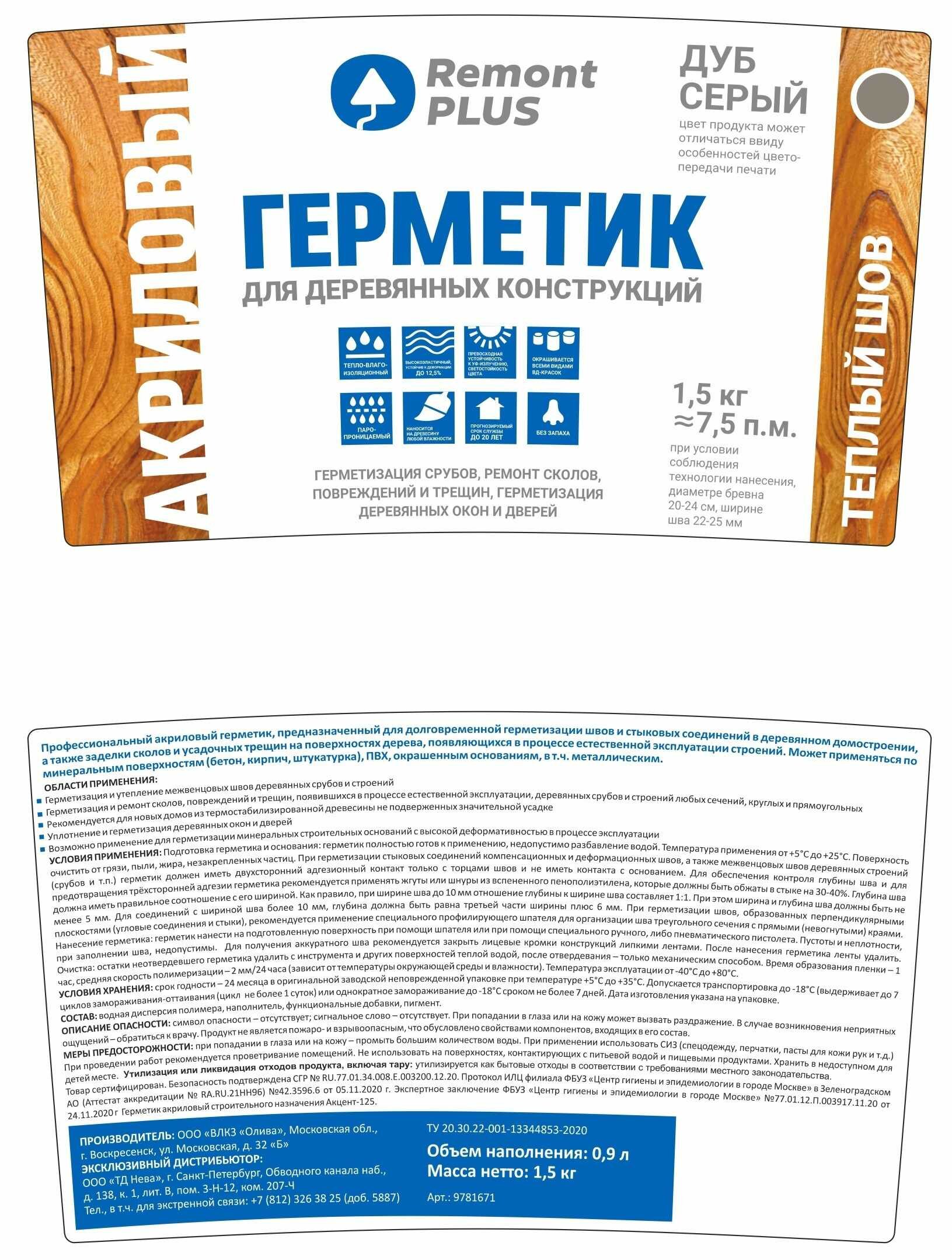 Герметик для деревянных конструкций RemontPlus 900 мл дуб серый Remont Plus