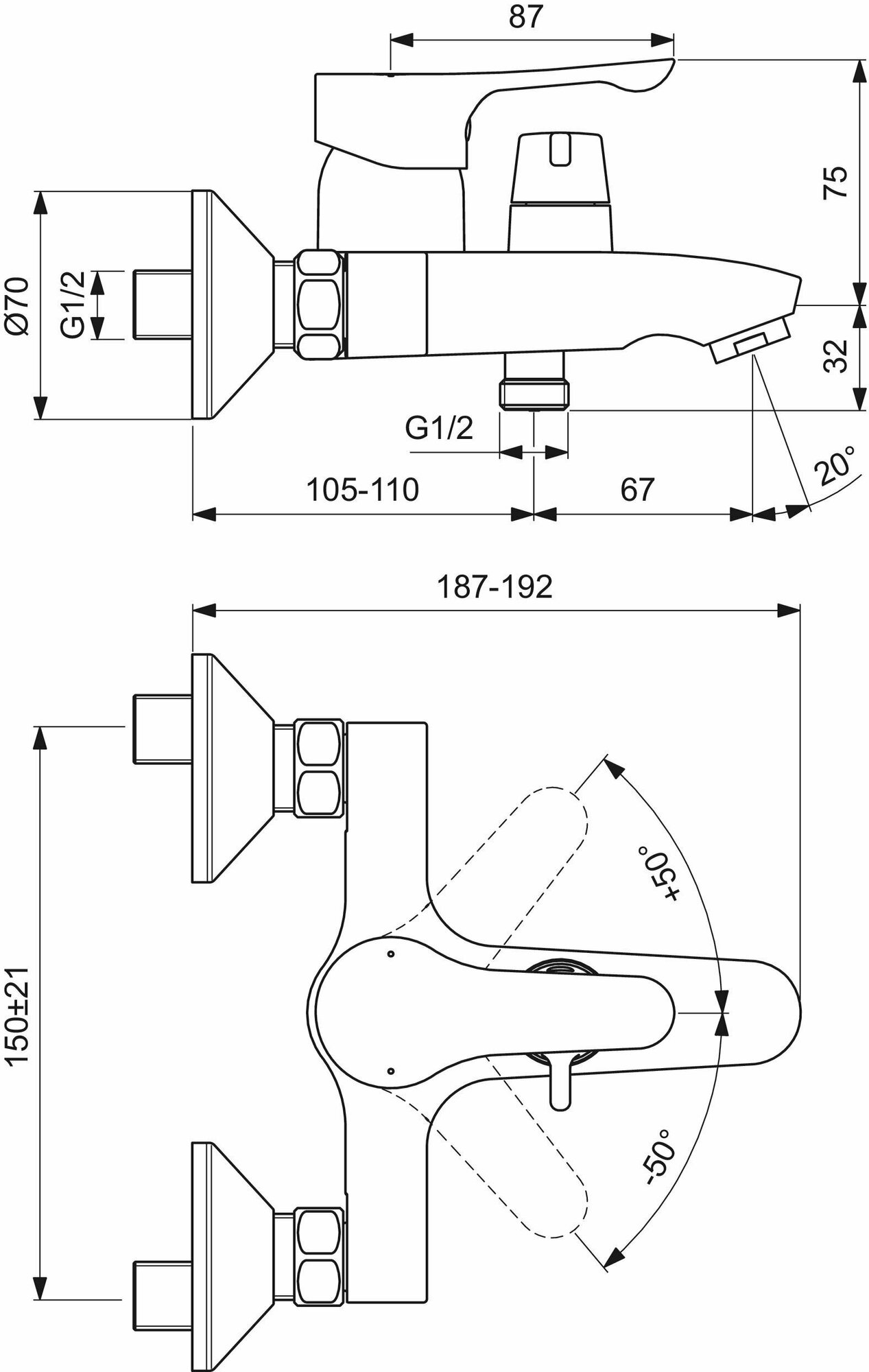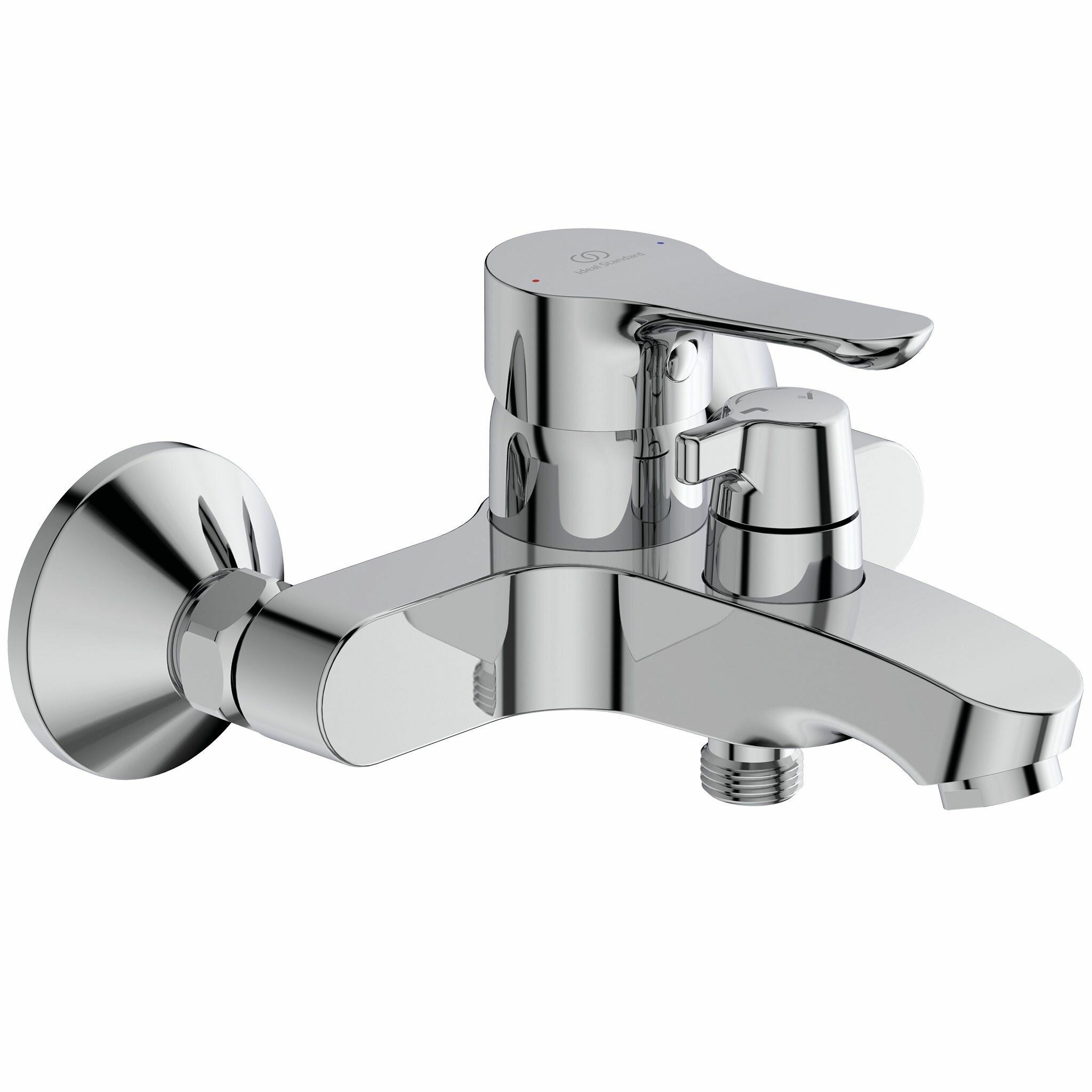 **Смеситель для ванны Ideal Standard Alpha однорычажный** предназначен для монтажа на стену. Оснащен кольцом для регулирования температуры воды и двухпозиционным картриджем. Имеется встроенный аэратор. Хромированное глянцевое покрытие легко моется. Отличается простотой монтажа.