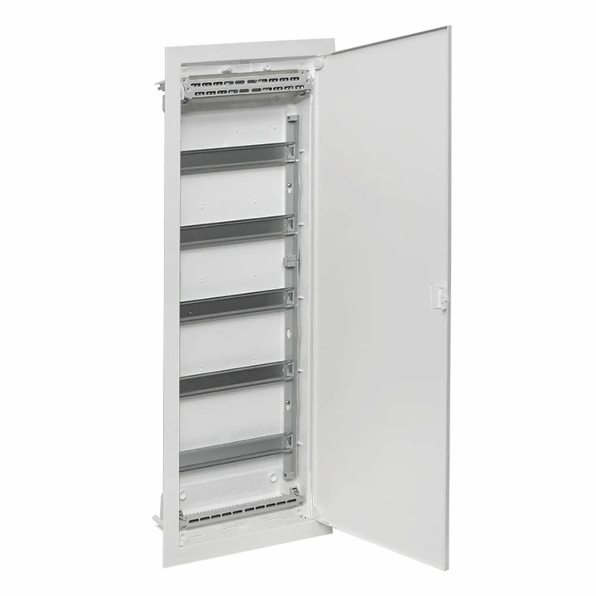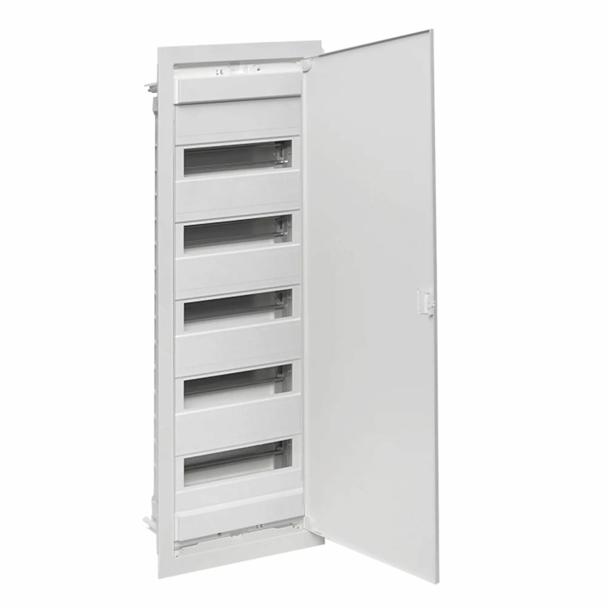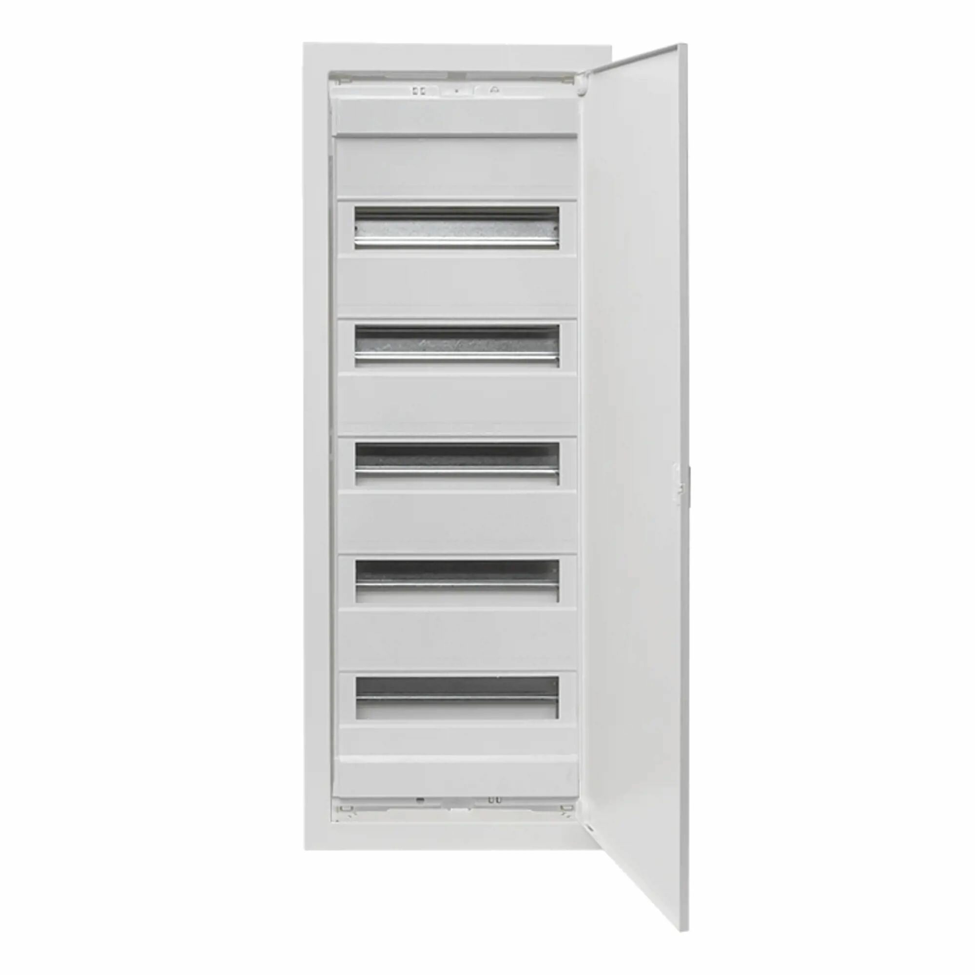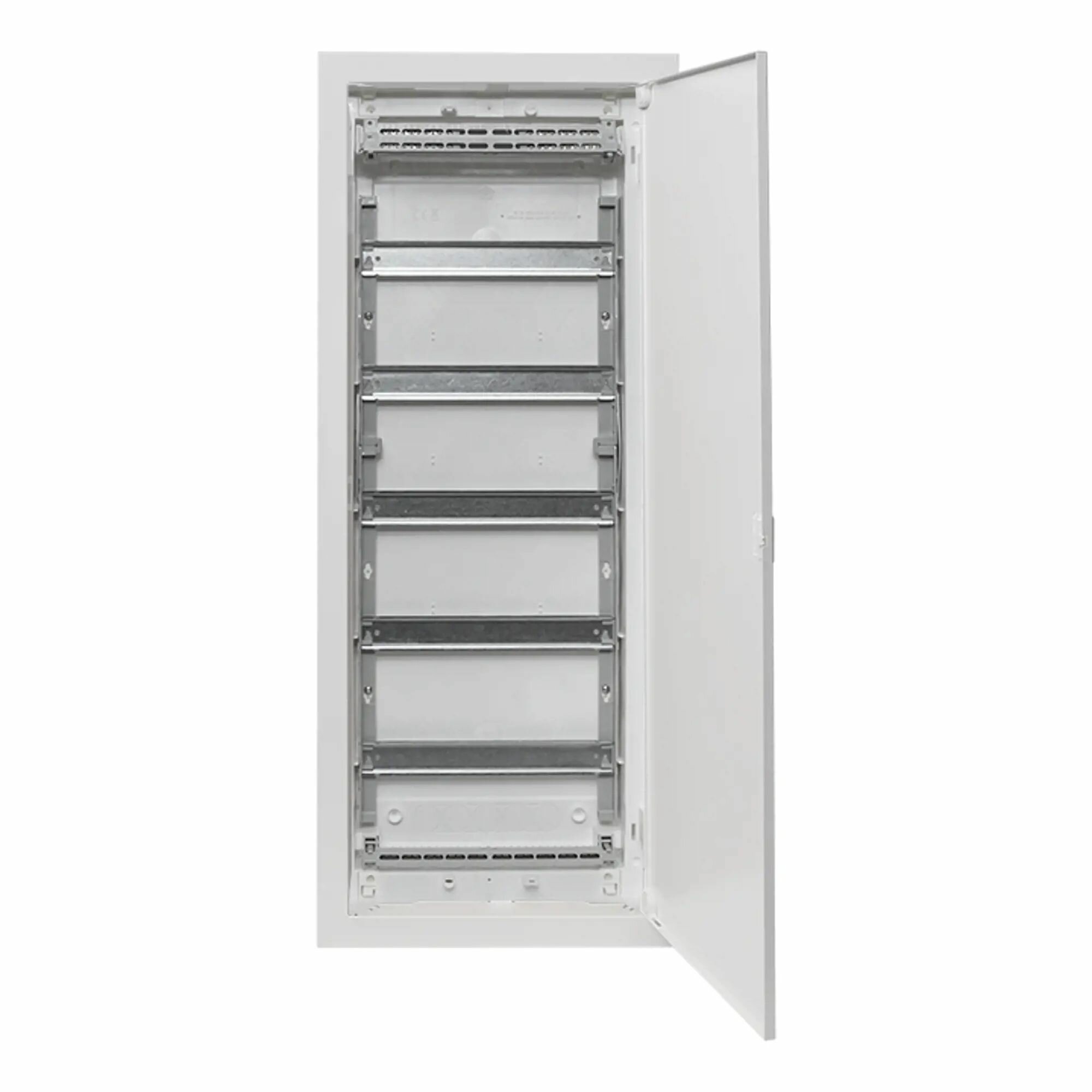 **Щит распределительный EKF Nova** - встраиваемая модель, рассчитанная на 60 модулей. Предназначен для сборки силовых, слаботочных, комбинированных щитов. Необходимое модульное оборудование устанавливается на DIN-рейки. Монтажные платы предназначены для крепления антенн-разветвителей, Wi-Fi-роутеров, патч-панелей, другого слаботочного оборудования.