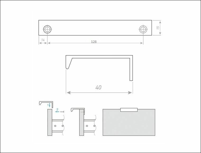 **Ручка-профиль CA1** — мебельная фурнитура, которая полностью прилегает к фасаду. Выполнена в виде небольшого отрезка металлического профиля, который фиксируется на торце или фасаде дверцы. Для изготовления использован алюминий — он придает ручке прочность и устойчивость к механическому воздействию. Монтаж осуществляется при помощи саморезов.