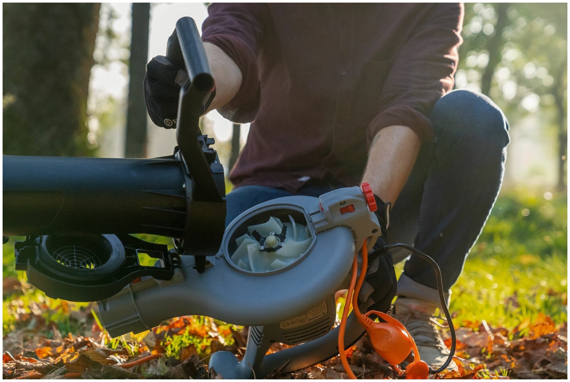 - благодаря встроенному металлическому ножу пылесос измельчает всасываемую листву, мелкие ветки и щепки;