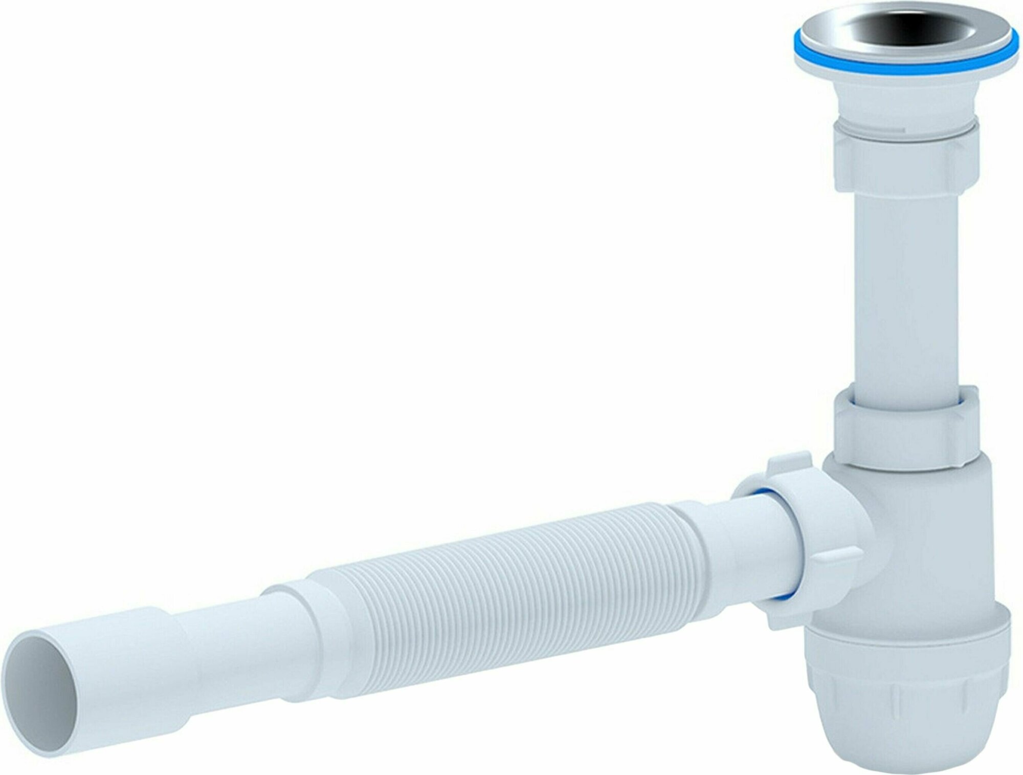 Сифон для умывальника бутылочного типа с уменьшенным корпусом. С нержавеющей решеткой 65мм. Для подключения к канализации комплектуется гибкой трубой 32*40/50мм.