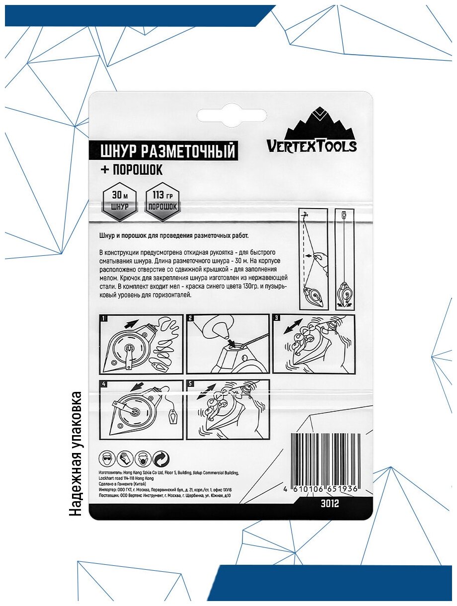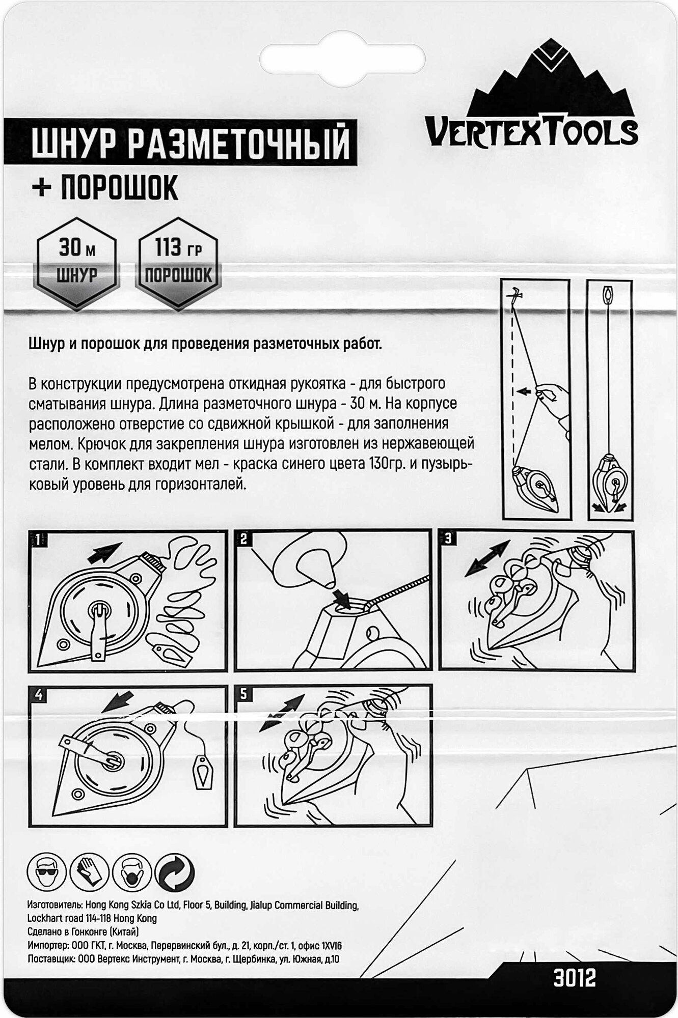 Набор разметочный Vertextools шнур 30 м порошок 130 г