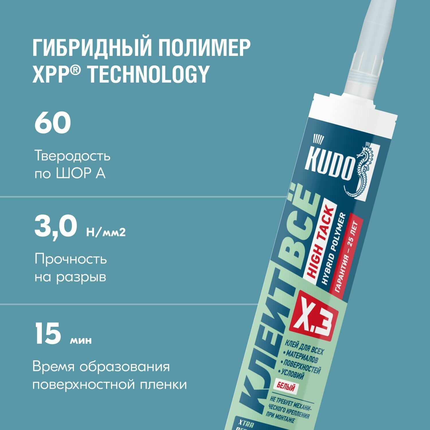 Клей KUDO Клеит Все HIGH TACK на основе гибридных полимеров белый 280 мл KX-3W Клеит Все HIGH TACK KX-3W