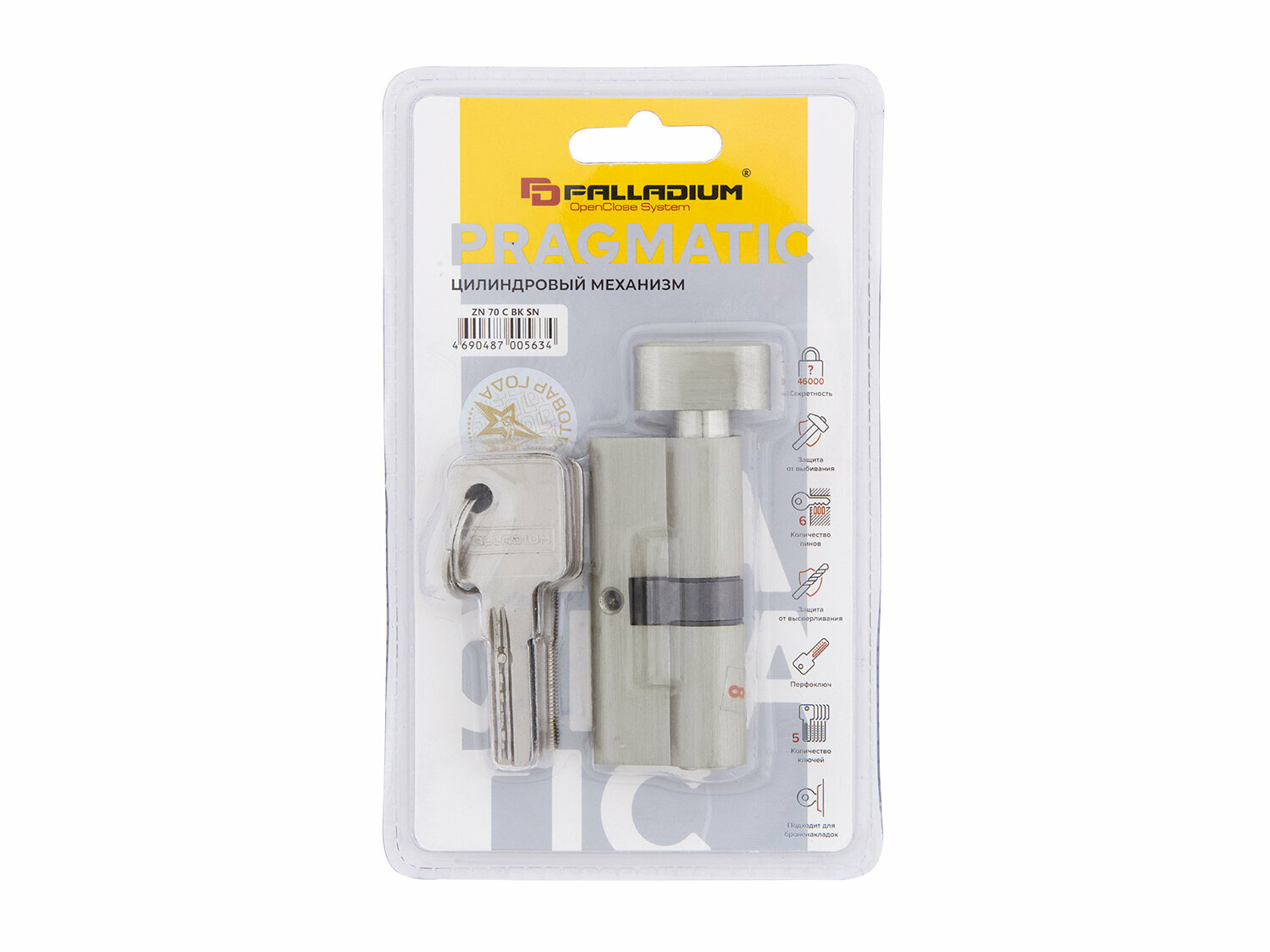 **Цилиндр Palladium** - «личинка» для замка. Цилиндр несимметричный, подходит для установки на дверь, с одной из сторон имеющую утолщение в виде декоративной накладки или специальной отделки. Тип открывания цилиндра - «ключ-вертушка». Устойчив к подбору ключа, вскрытию отмычками или бампингом, высверливанию. Универсальный механизм позволяет установить цилиндр на правую и левую дверь.