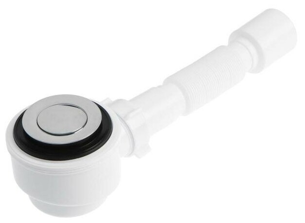 **Сифон АНИ Пласт** предназначен для установки на душевые поддоны. Оснащен хромированной крышкой, которая не боится коррозии. При помощи пластиковой гофры можно регулировать длину отвода. За счет системы клик-клак можно одной рукой открыть и закрыть слив.