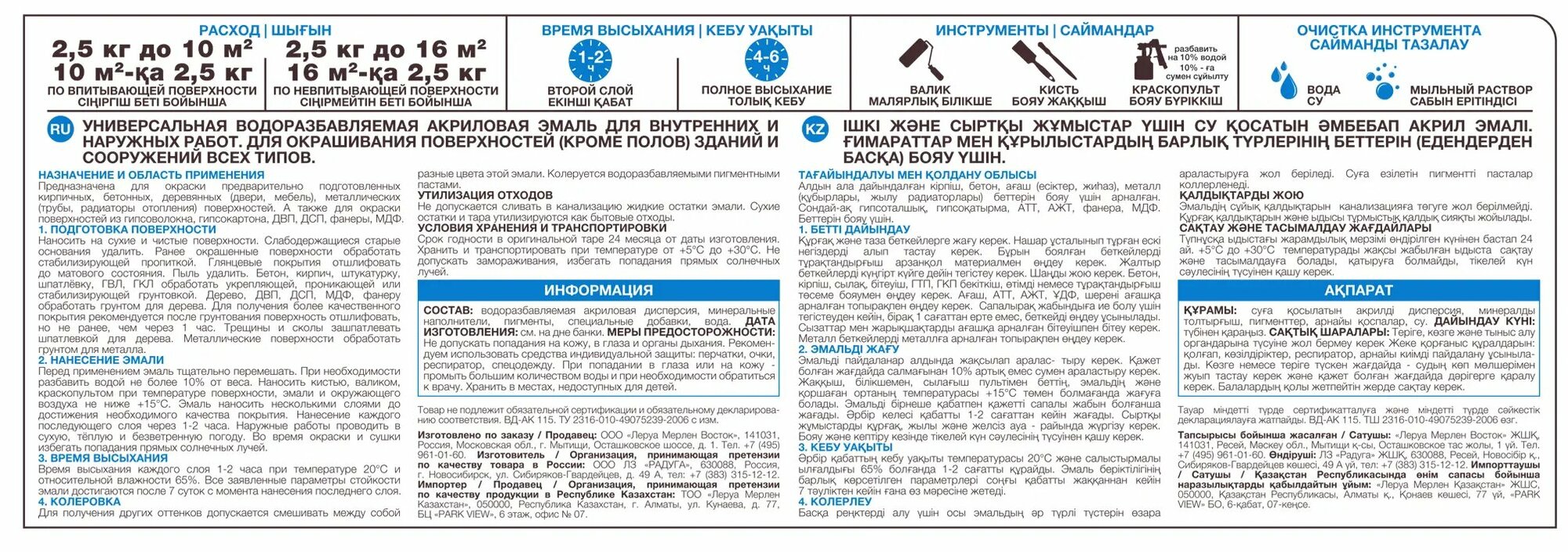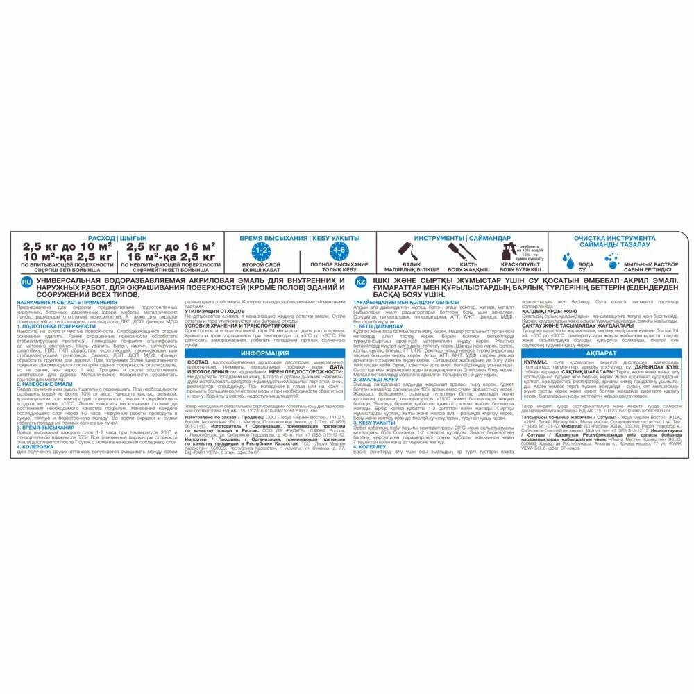 | Время полного высыхания (ч) | 6.0 |