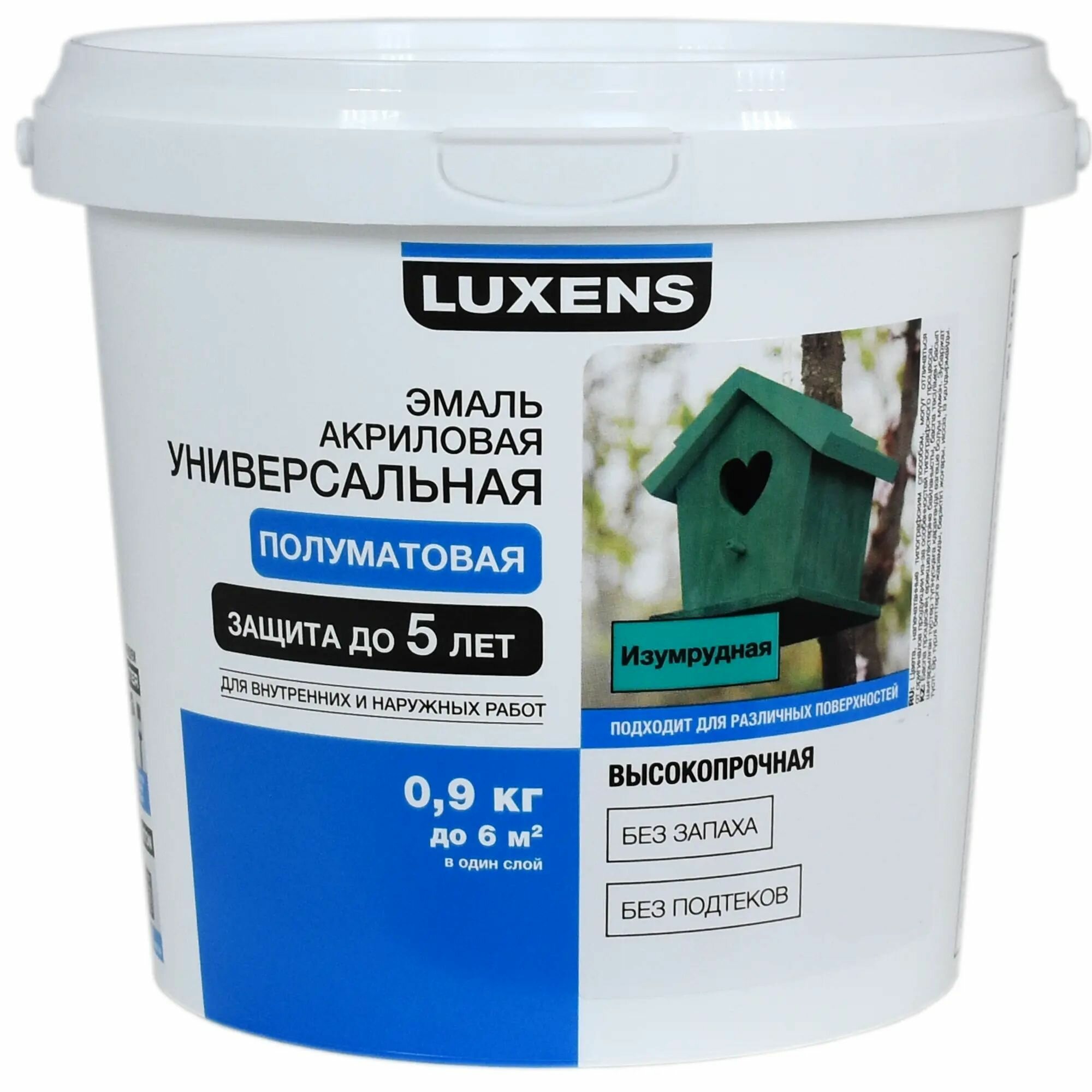 **Эмаль Luxens акриловая** используется для внутренних и внешних отделочных работ. Наносится валиком, кистью или краскопультом. Применяется для обработки поверхностей из дерева, кирпича, металла, бетона, ДСП, МДФ, гипсокартона. Не предназначена для окраски пола. Не имеет запаха. После высыхания может подвергаться мойке с неабразивными средствами бытовой химии. Поставляется в пластиковой таре с герметично закрывающейся крышкой.