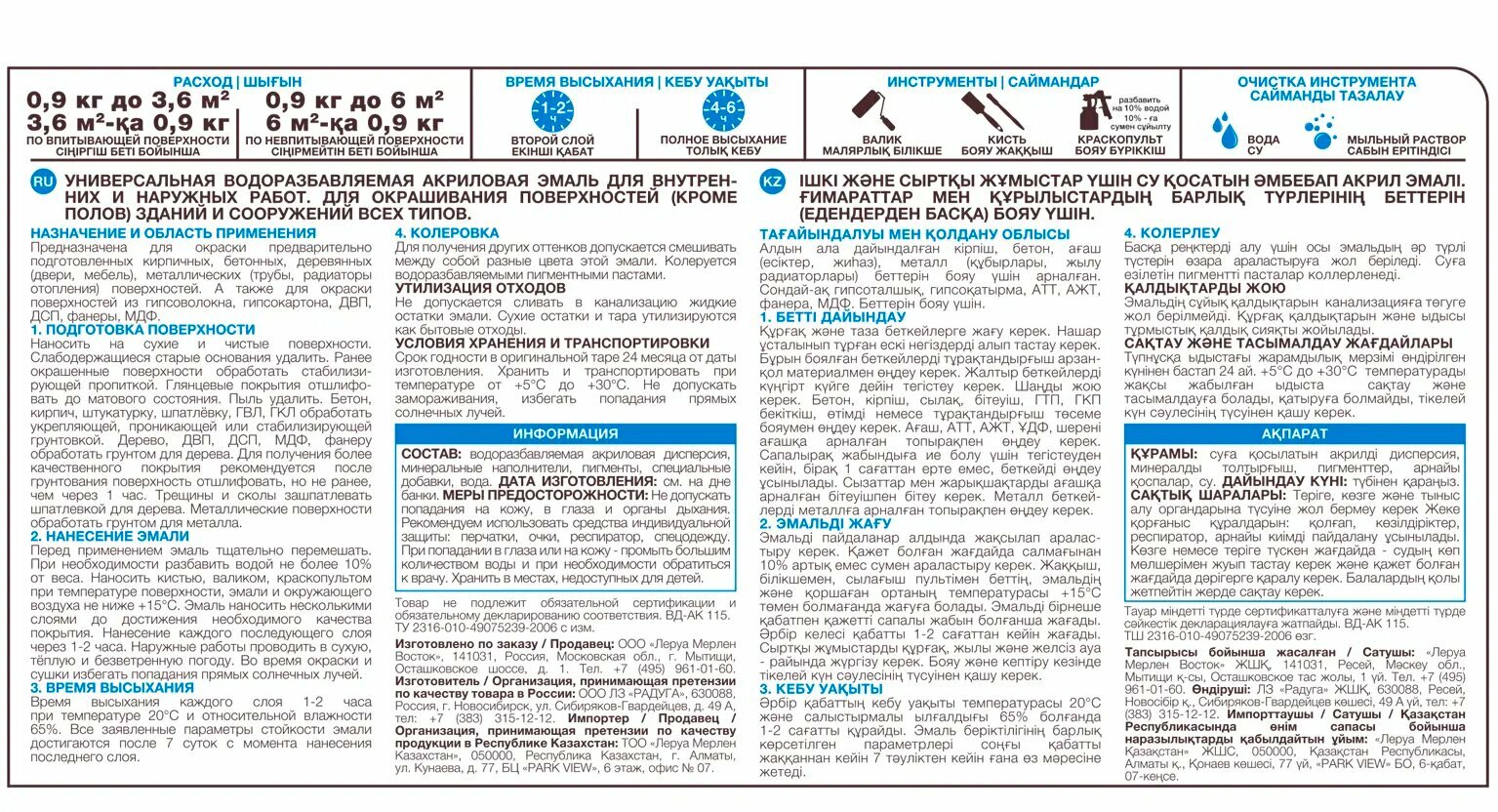 | Время полного высыхания (ч) | 6.0 |