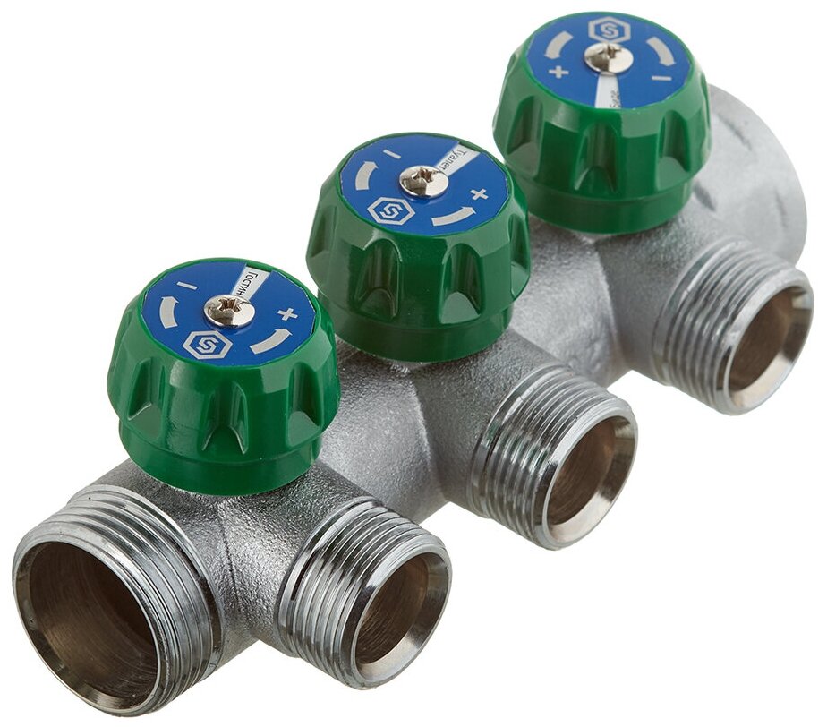 Сервис сравнения цен СкидкаГИД предлагает сравнить цены на товар «Коллектор регулирующий Stout на 3 отвода 1"x3/4"»