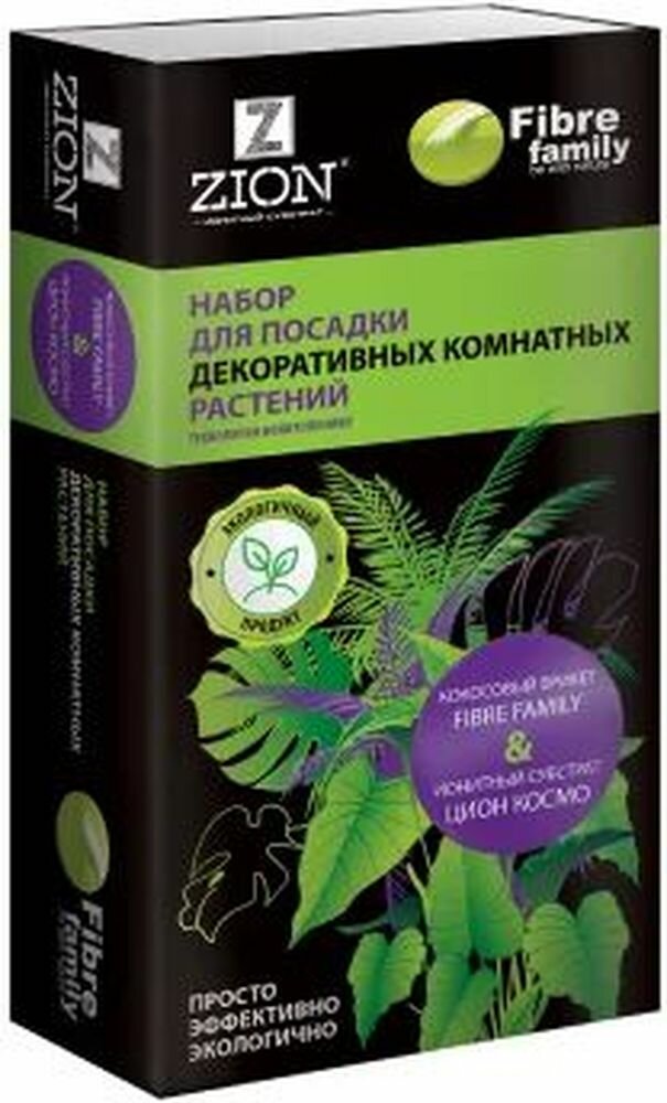 **Набор Zion** используется для посадки комнатных растений. Состоит из брикета, изготовленного из кокосового торфа (100%), органических веществ, смеси ионообменный материалов на основе природных цеолитов. Способствует нормальному росту и развитию растений, стимулирует корнеобразование.