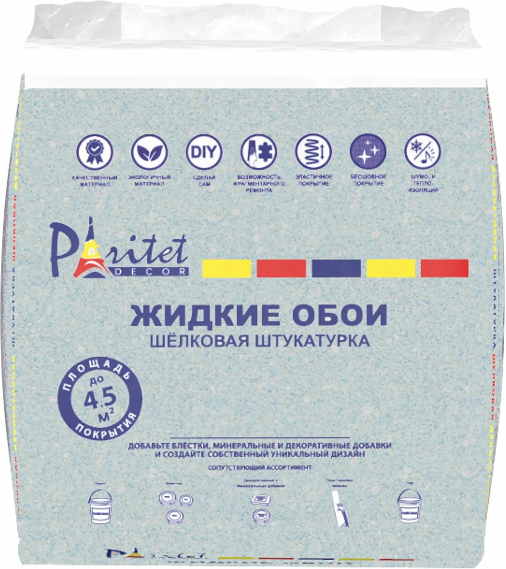 **Жидкие обои гладкие Paritet В50** предназначены для финишной обработки стен. Позволяют скрыть мелкие дефекты и создать уникальную поверхность. Используются для работ внутри помещений. Заменяют классические обои, штукатурку, краску. Формируют гладкое и ровное покрытие, которое можно мыть. Подходят для декора стен, создания уникального дизайна помещений.