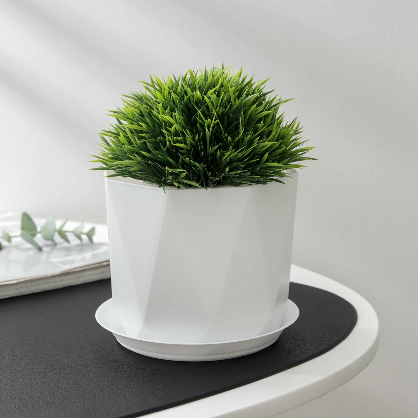 **Кашпо для цветов Призма** предназначено для высаживания домашних цветов. Выполнено в оригинальной форме из качественного, плотного пластика. В комплекте идет поддон, в котором собираются излишки воды.