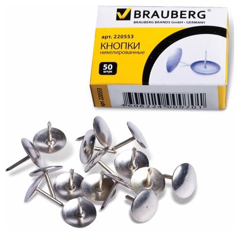 Кнопки канцелярские 10 мм цвет серебристый 50 шт. Brauberg