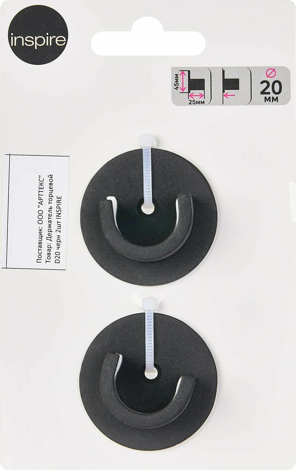 Держатель торцевой Inspire металл цвет черный 2 см 2 шт.